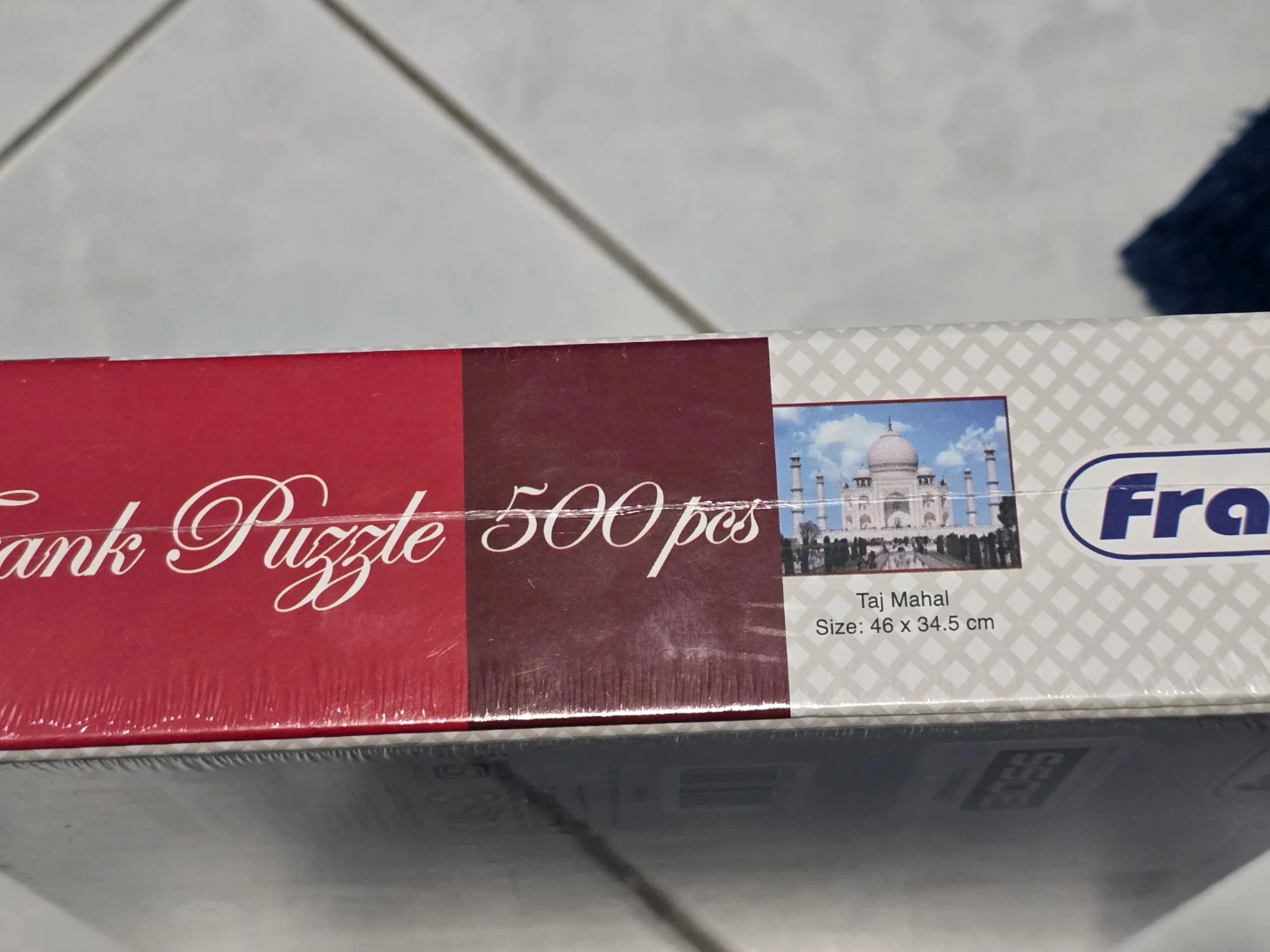 It's a brand new Frank puzzle featuring the Taj Mahal with 500 pieces. The finished size is 46 x 34.5 cm. Recommended for ages 10+.