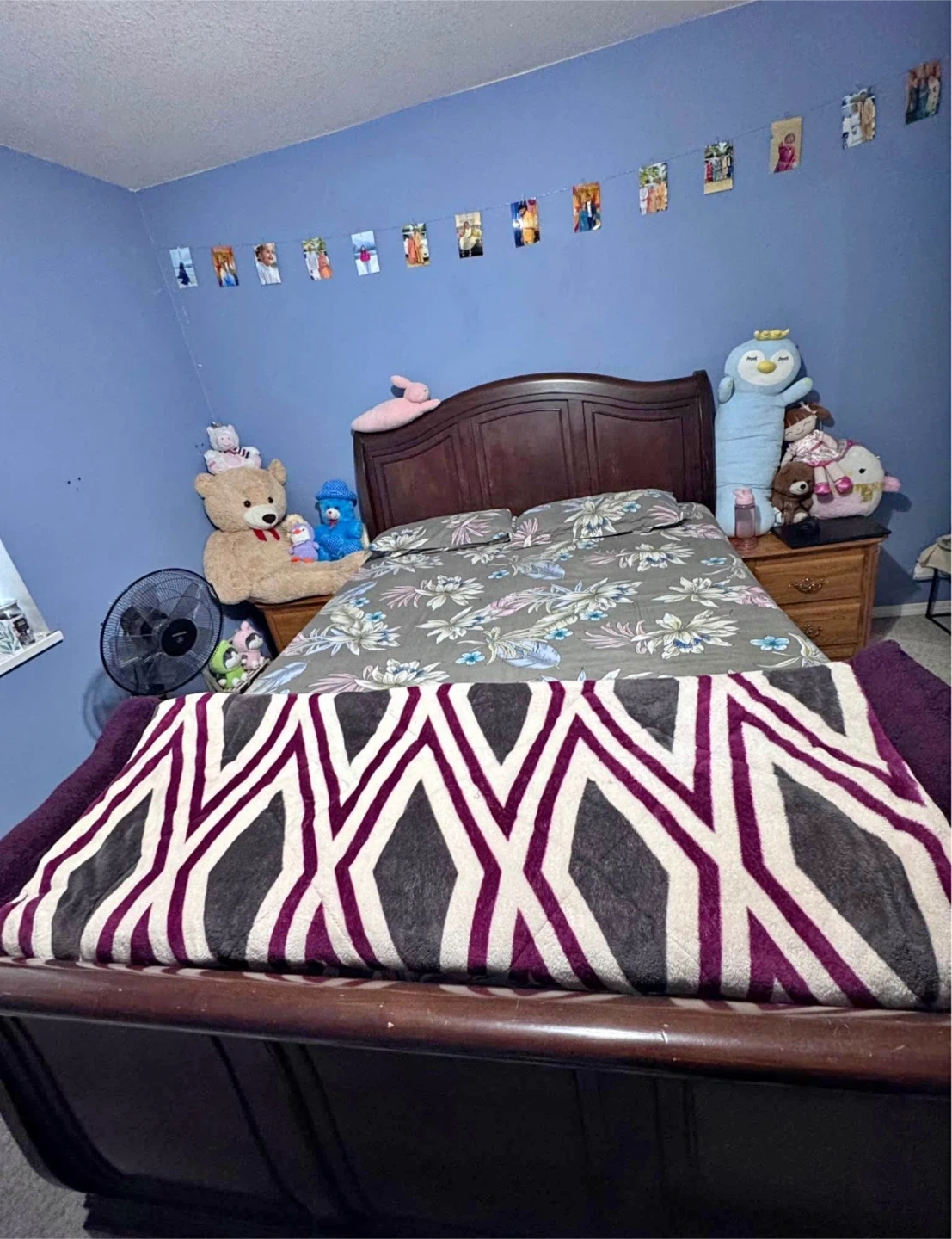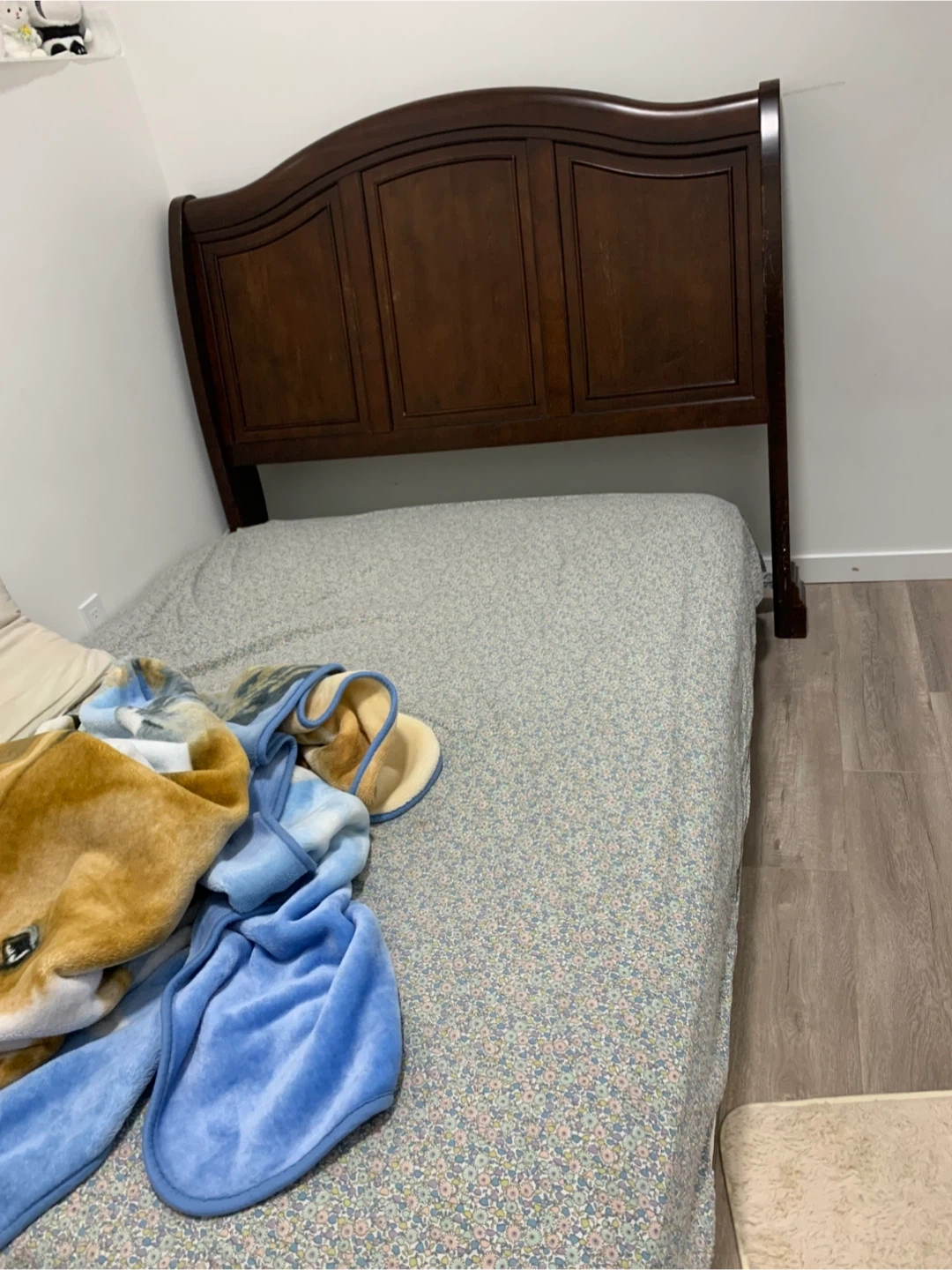 Selling a dark brown queen size bed frame. It's in good condition and ready to go to a new home! Perfect for any bedroom. Price is also negotiable