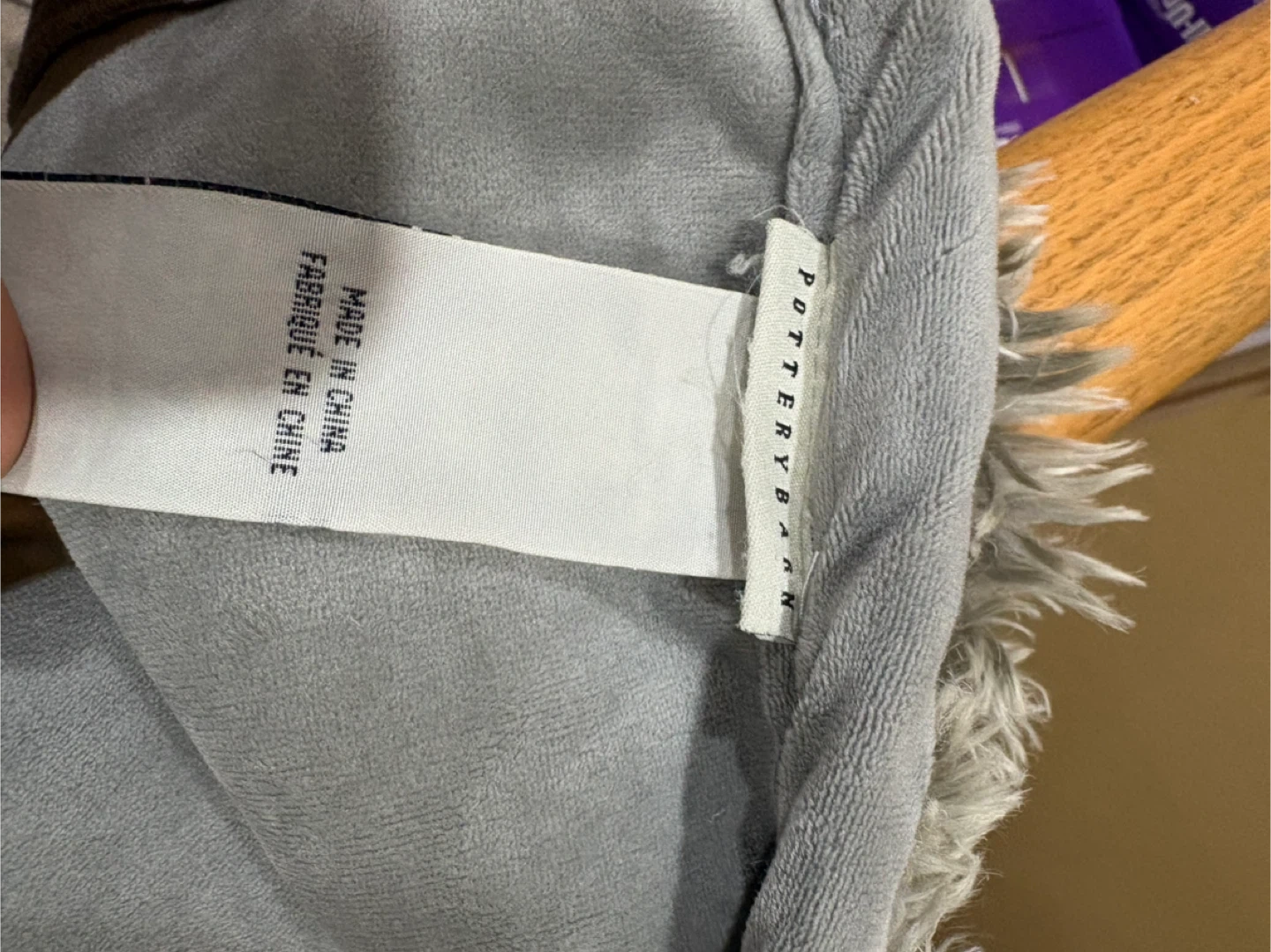 This Pottery Barn throw blanket features a super soft faux fur on one side and a smooth plush on the other. It's a cozy addition to any room! Grey colour.