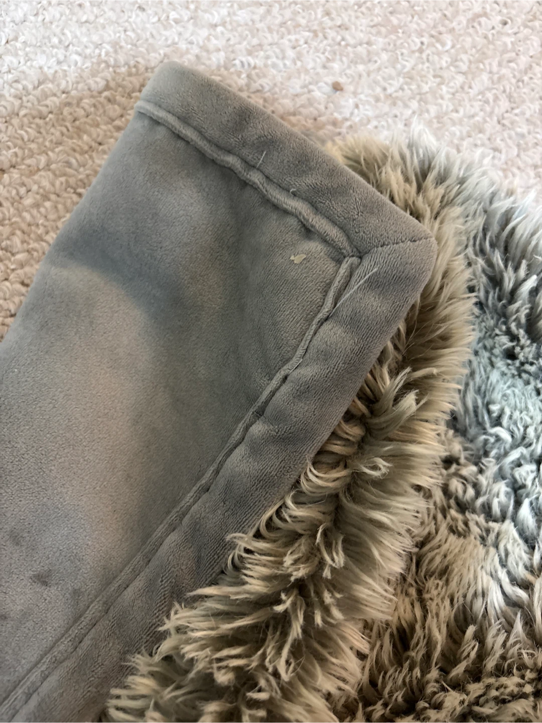 This Pottery Barn throw blanket features a super soft faux fur on one side and a smooth plush on the other. It's a cozy addition to any room! Grey colour.