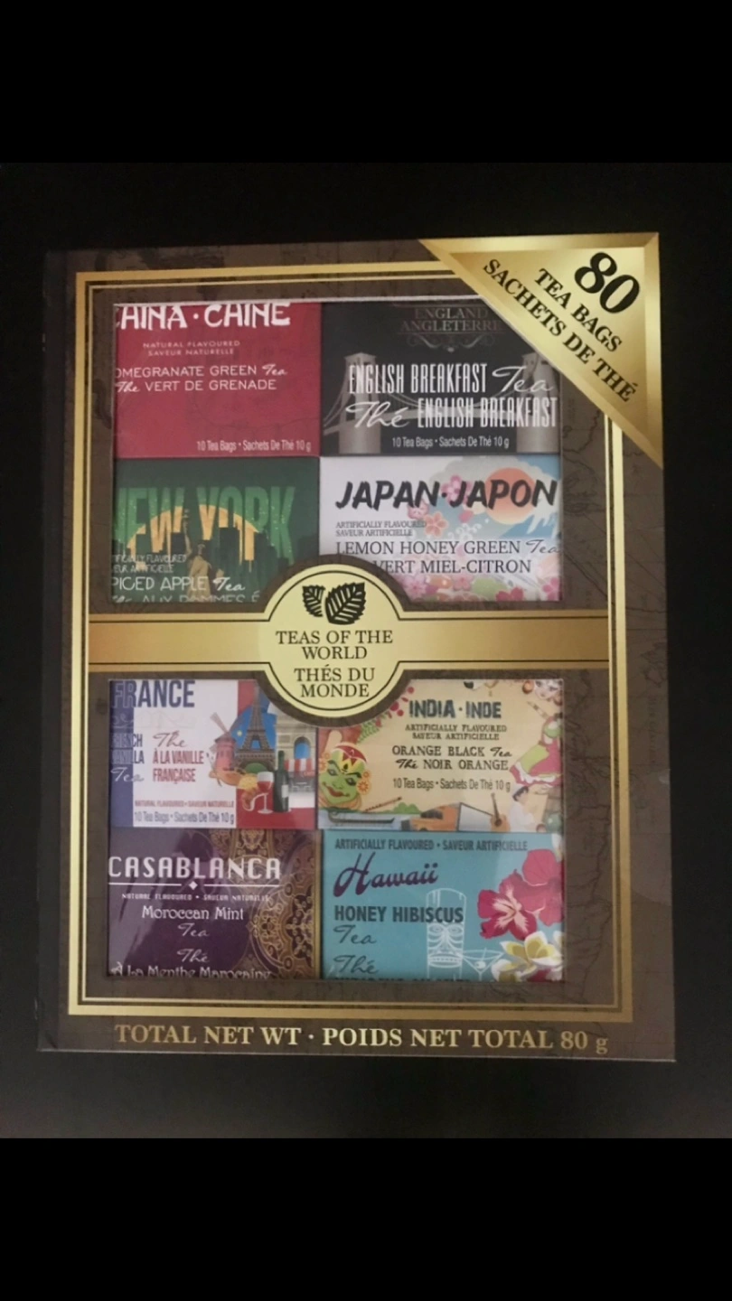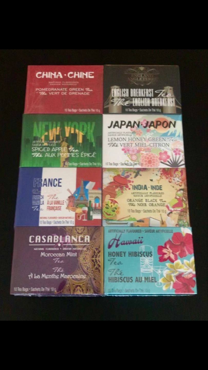 An assortment of 8 different Teas representing 8 different cities from around the world. 8 flavors!