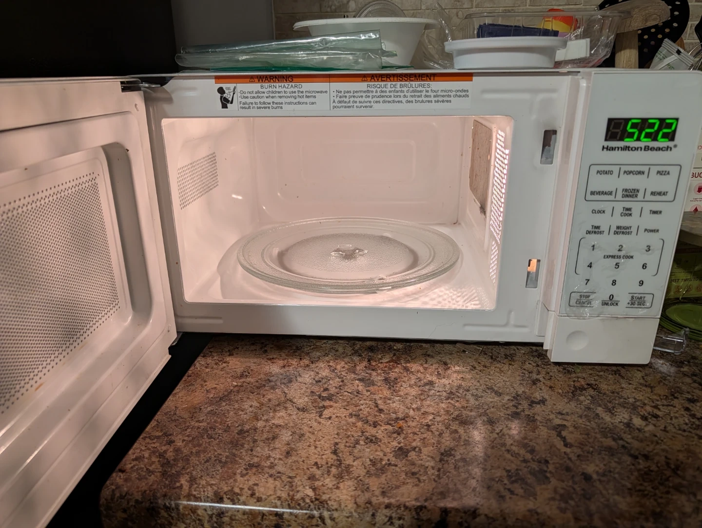 No complaints with the microwave It's great for reheating food and it also has child safe feather