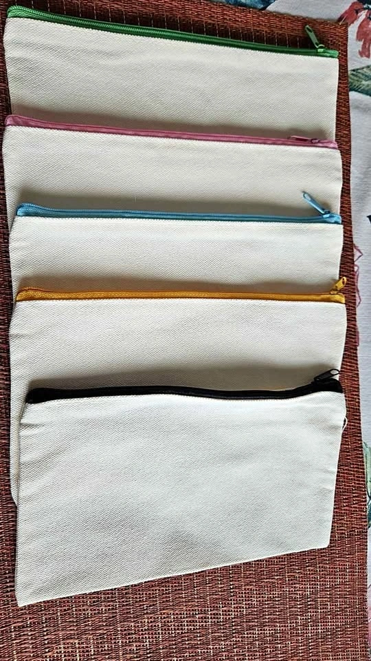 5 canvas zippered pouches for jewelry, stationery, toiletries, makeup or to store all your small things.