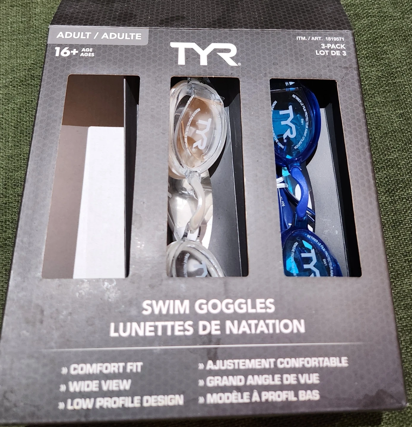 Two pairs of new googles that were a part of a 3 pack. They feature Durafit gaskets and a low profile design. Wide peripheral view is also included.