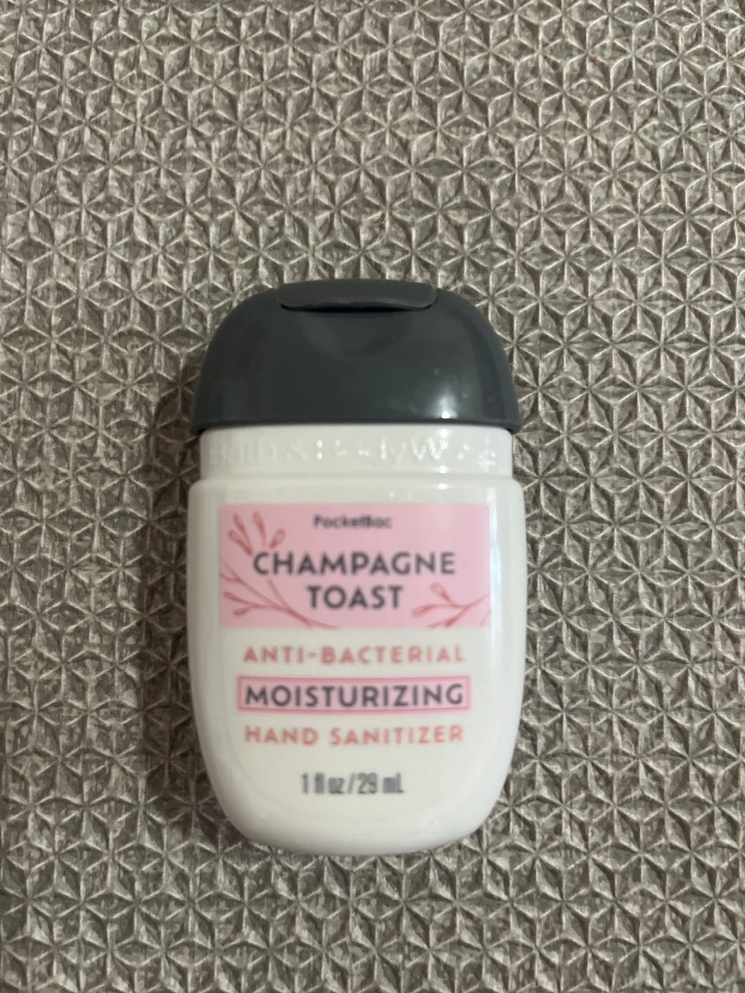 This PocketBac hand sanitizer is the Champagne Toast scent. It's anti-bacterial and moisturizing. 1 fl oz/29 mL.