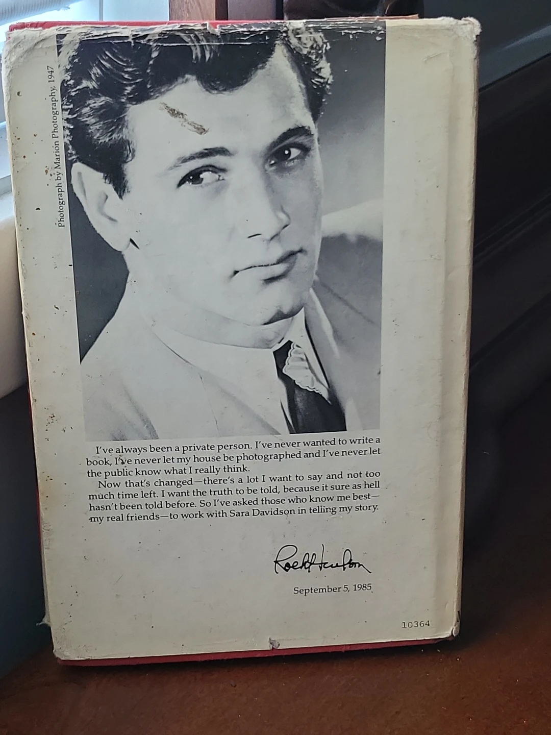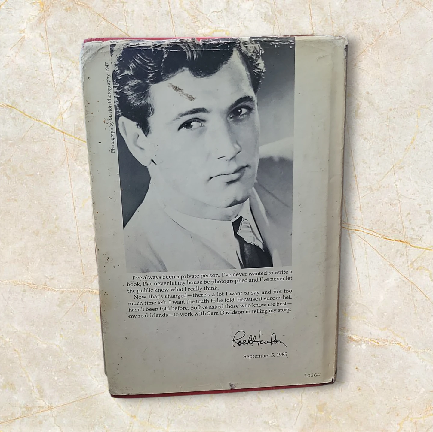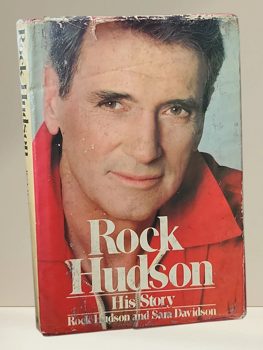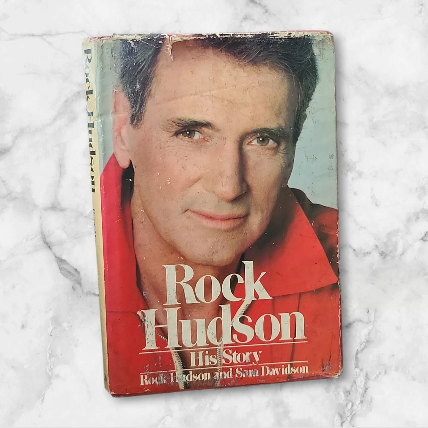 Selling the book "Rock Hudson: His Story" by Rock Hudson and Sara Davidson. It's a biography about the actor Rock Hudson. The book shows signs of wear from age but is in readable condition