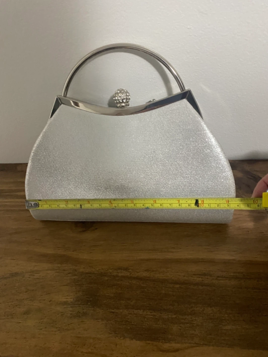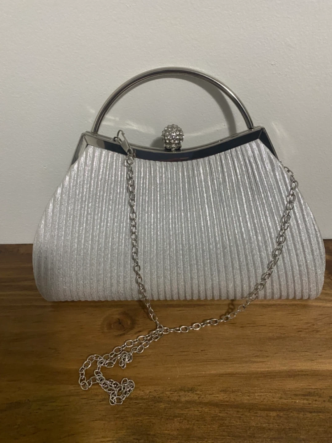 Sparkly silver clutch bag, perfect for evening events. It's approximately 8 inches wide. Includes a detachable silver chain strap. The fabric has a glittery finish, perfect condition , pet free home . Pick up in Newmarket