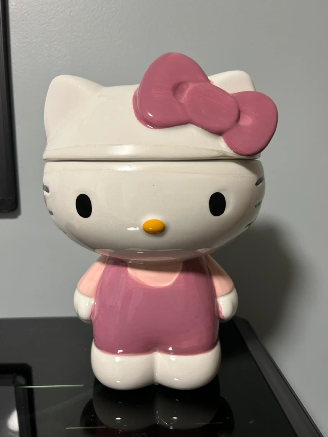 NEW Super cute Hello Kitty cookie jar by Sanrio! This ceramic cookie jar is perfect for adding a touch of kawaii to your kitchen. It's in great condition and ready to hold your favourite treats. Hand wash only, and please don't use it in the microwave!