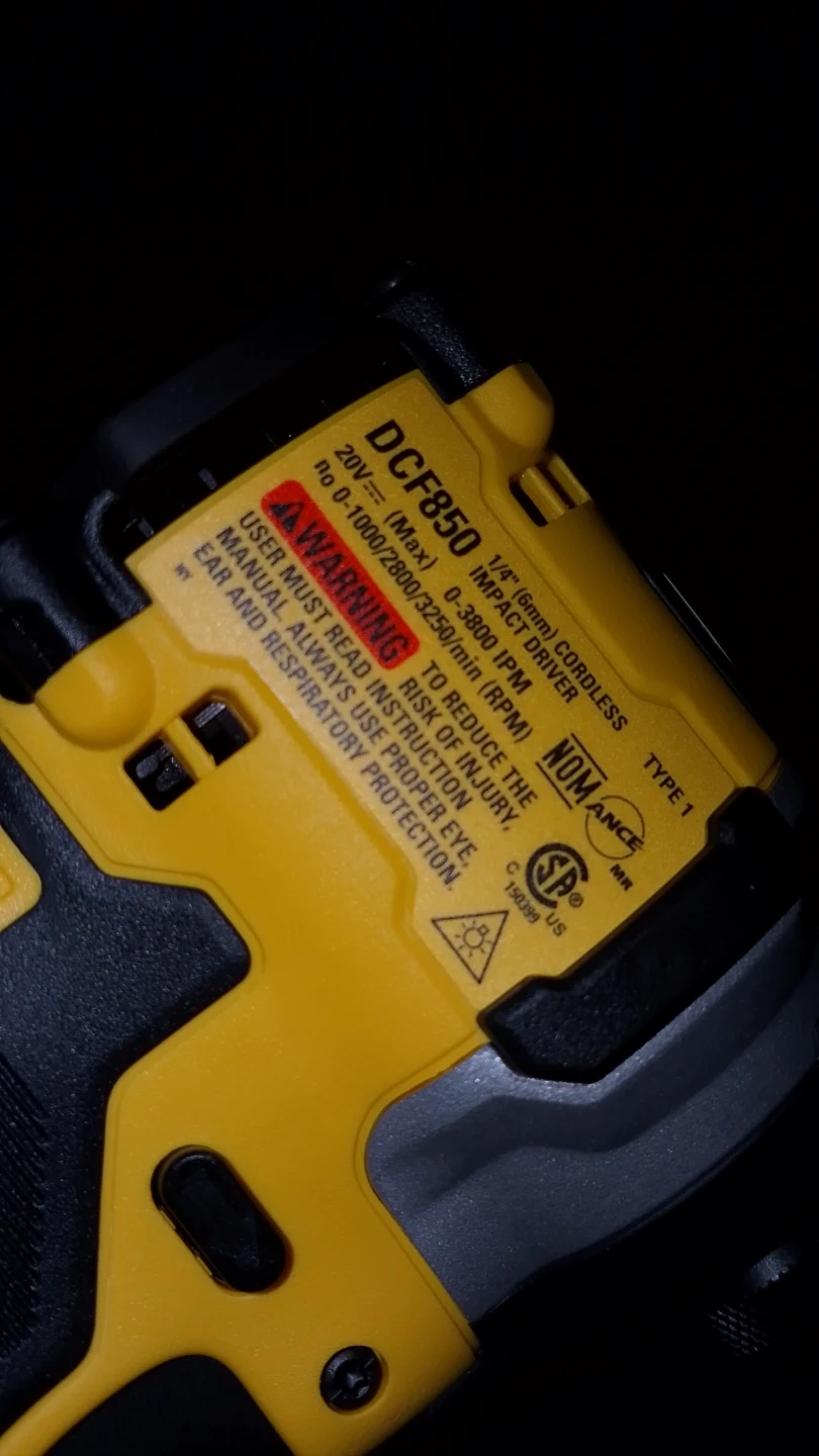 This is a DEWALT DCF850 1/4" (6mm) cordless impact driver. It has a brushless motor with speeds up to 3800 RPM. This tool is great for DIYers and professionals alike.