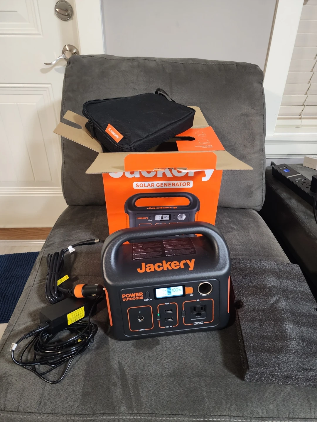 Selling a Jackery solar generator. It comes with the original box and all included components and accessories. Great for camping or as a backup power source!