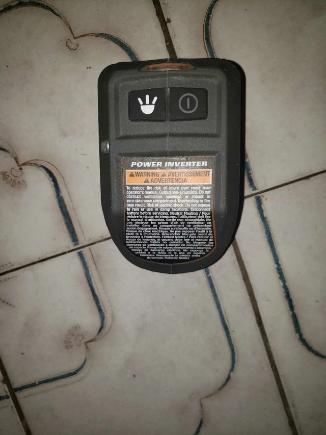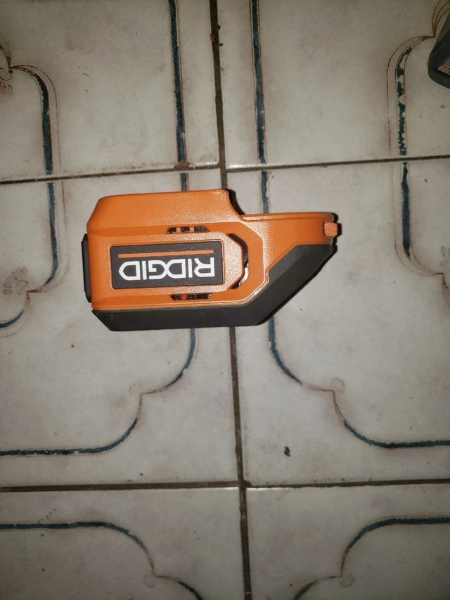 I am selling a used RIDGID power inverter, perfect for on-the-go power needs. This handy device comes with a standard AC outlet, USB ports, and a built-in LED light. It's powered by RIDGID batteries, making it a convenient addition to your toolkit. Key Features: - Standard AC outlet - Dual USB ports - LED work light - Compatible with RIDGID batteries. Cash accepted.