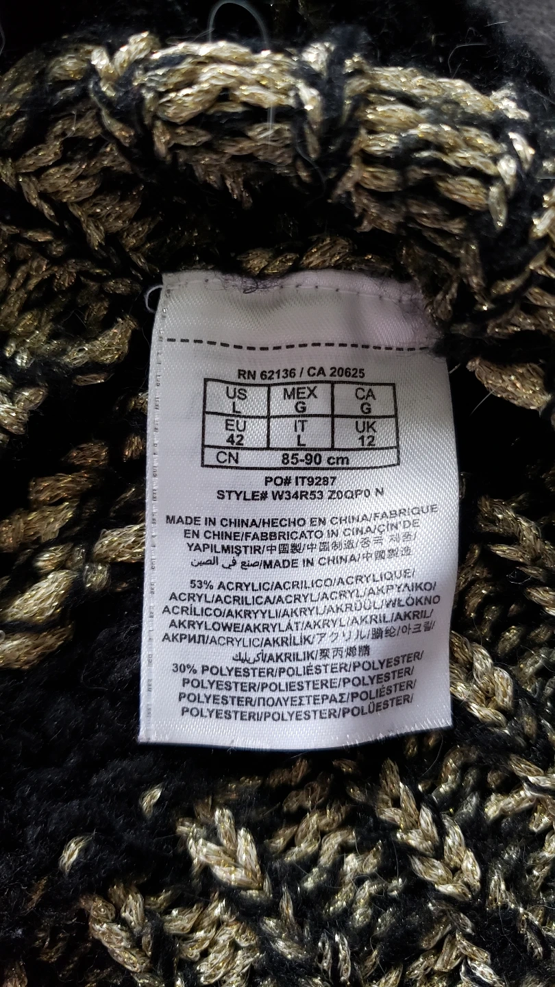 GUESS Black and Gold Striped Knit Sweater - Size Large