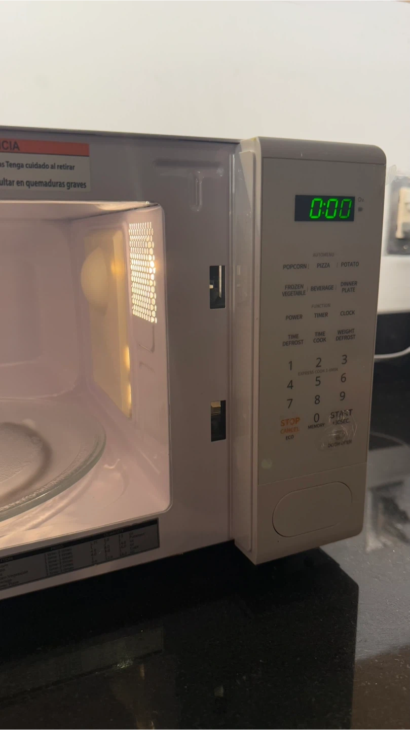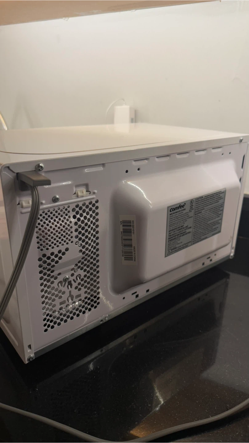 Selling a Comfee' microwave in white! It features a user-friendly control panel and six auto cooking presets. It also has a removable, easy-to-clean interior and a defrost function by time and weight