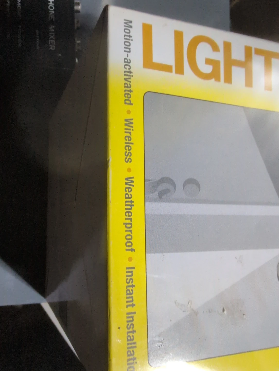 This is a white, wireless LED porch light by LIGHT IT!. It's motion-activated, weatherproof, and installs instantly. Battery operated with no wiring needed. Turns on automatically at night for safety and convenience.