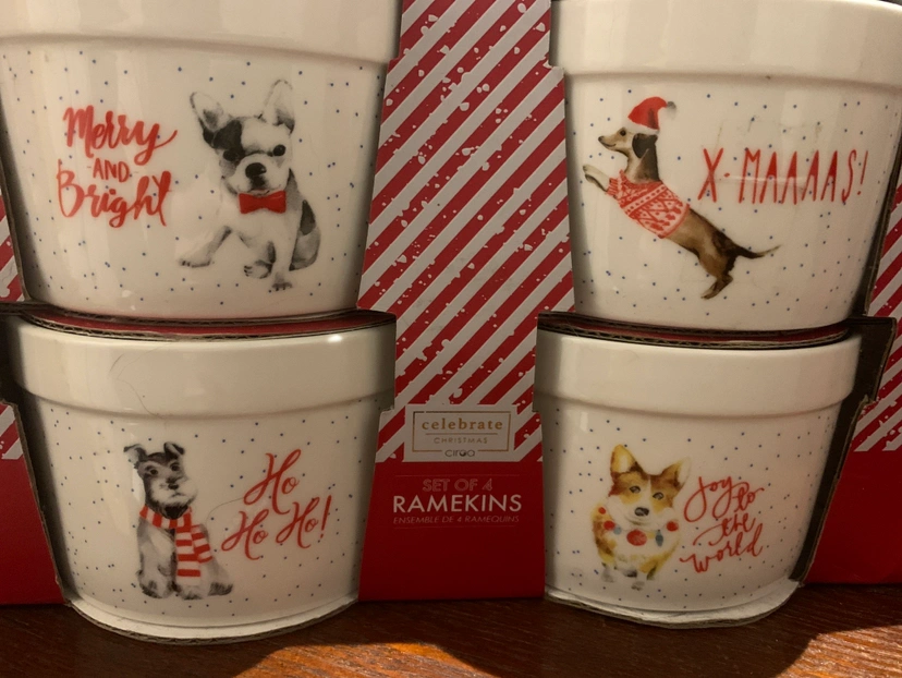 Pkg. of 4 Good quality ceramic 🎄gift-able ramekins for the pet lover or hostess gift-make a doggy 🐶lovers day🐾-open to subway line pick up