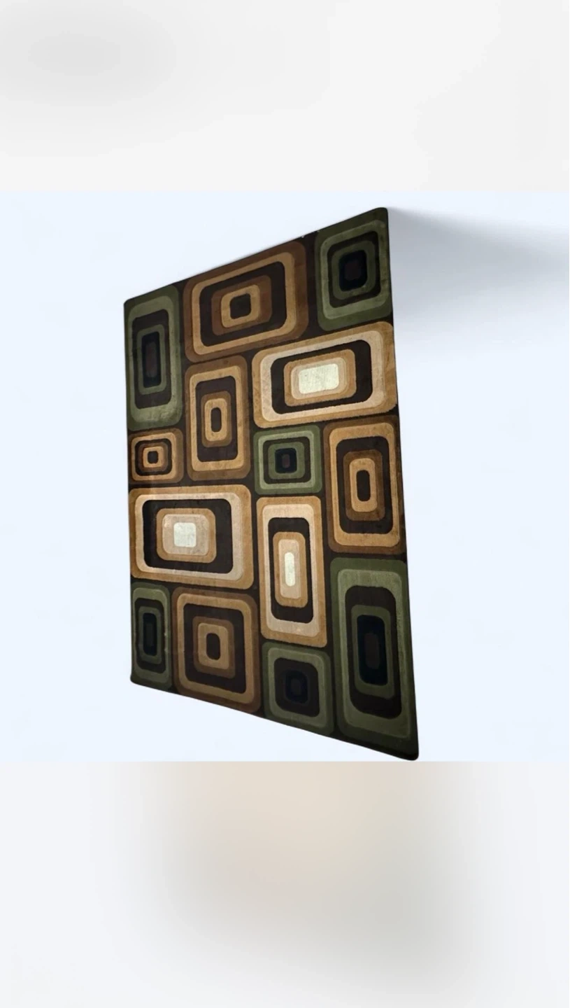 This rug features a cool retro design with brown and green tones! It would be a great addition to any room needing a vintage touch. The rug is in good condition and ready to enhance your home decor.