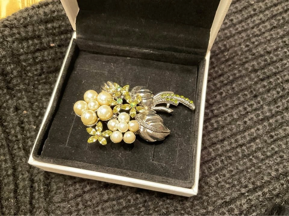 Stunning Vintage RMN (Roman Company) Ladies Brooch with faux pearls and Austrian crystals from the 1970s. From a smoke & pet-free home. #366/800. Available in Richmond Hill near Bathurst & King Rd.