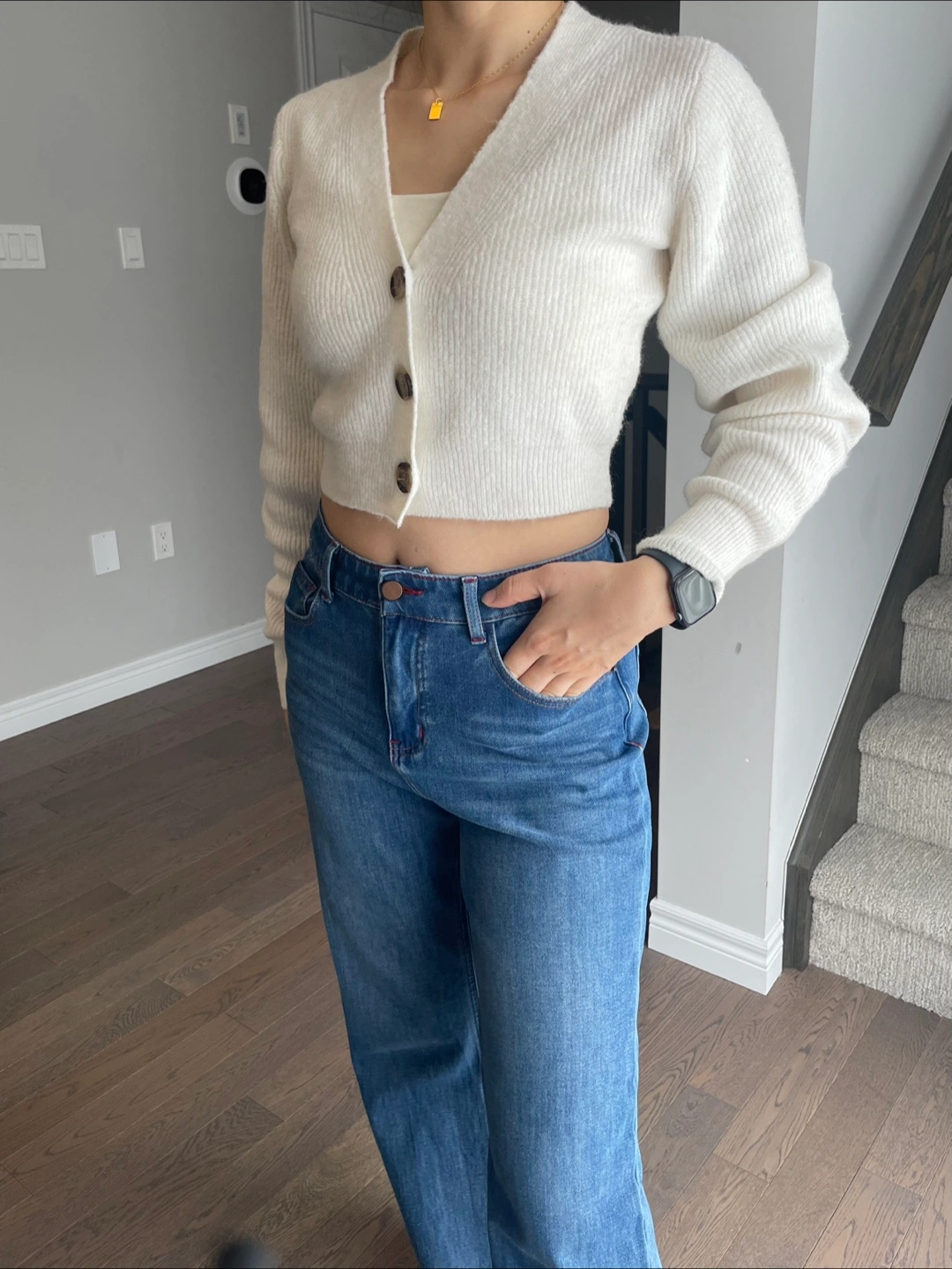 White Cropped Cardigan, Size S-M