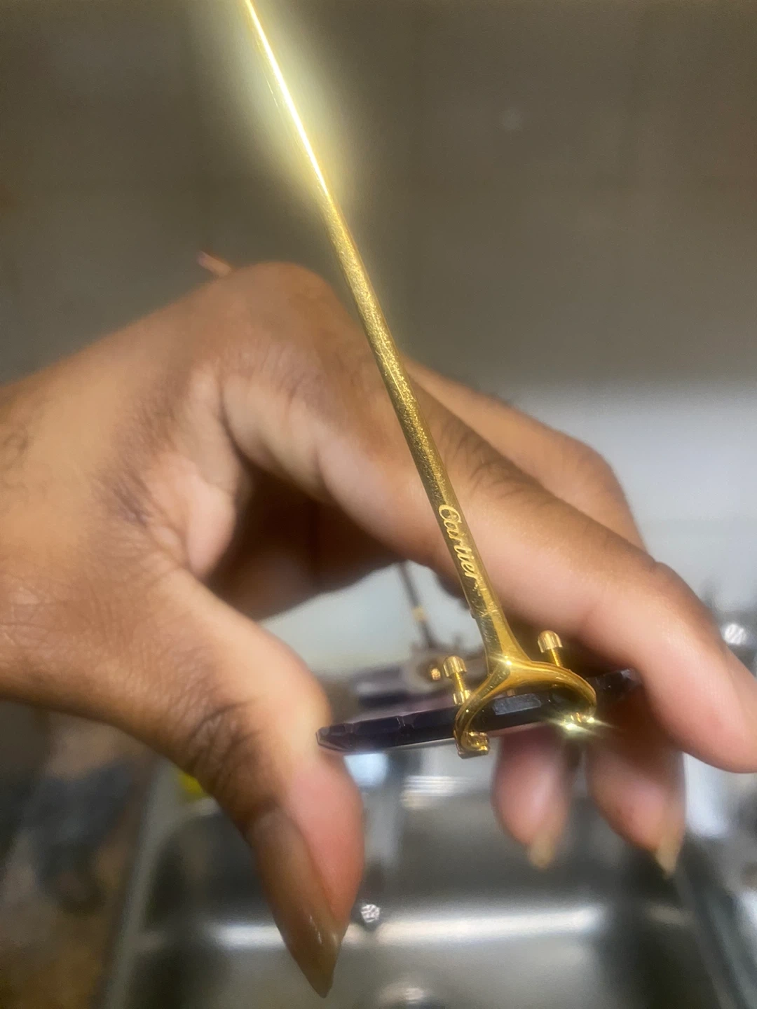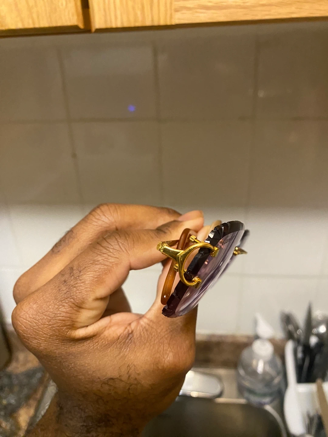 Selling a pair of Cartier sunglasses. They come with the original Cartier case. The sunglasses have a gold frame and purple tinted lenses. Feel free to message me if you're interested!