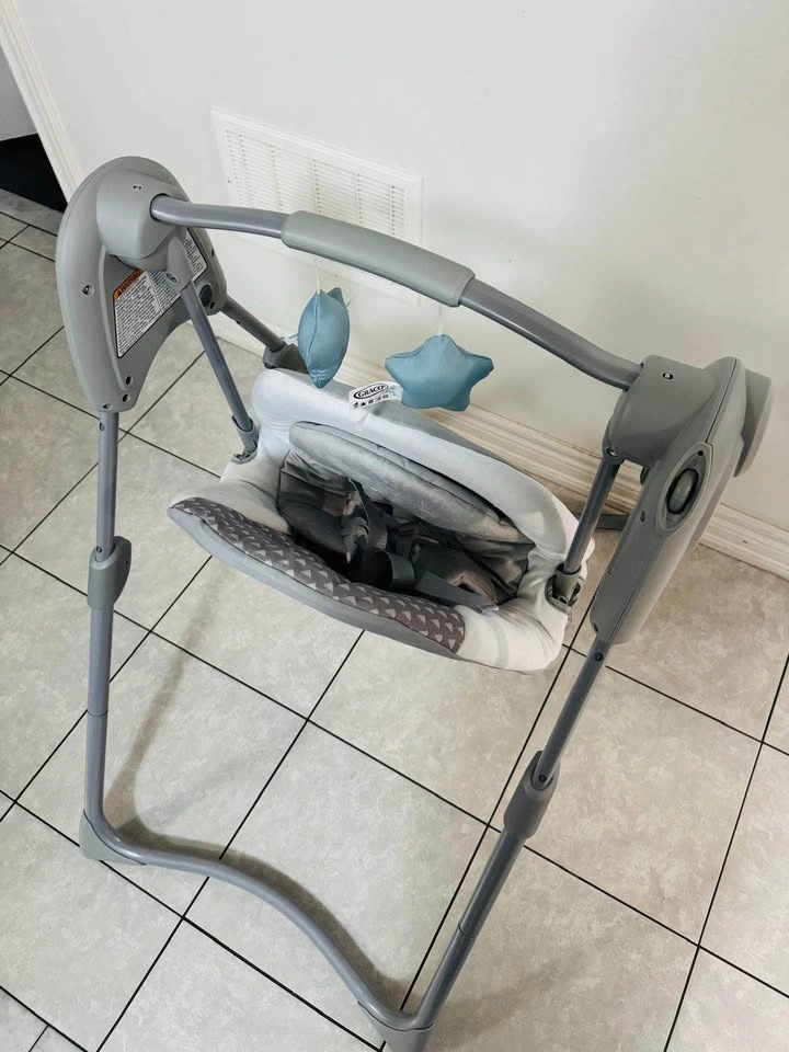 Properly working Graco Slim Spaces compact baby swing. It has adjustable height and was only used one time as it was a gift.