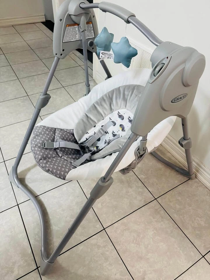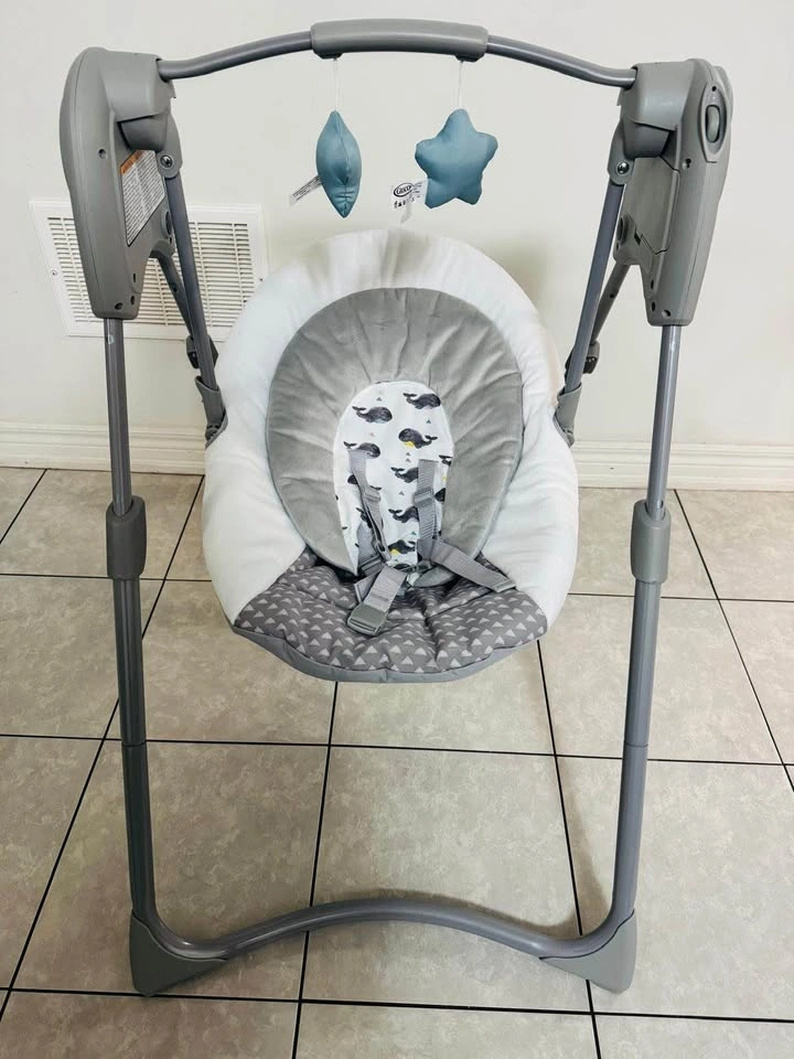 Properly working Graco Slim Spaces compact baby swing. It has adjustable height and was only used one time as it was a gift.