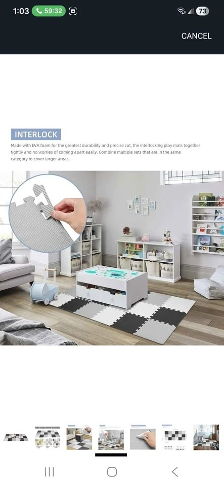 LIVINGBASICS Baby Play Mat, 16 pcs Puzzle EVA Foam Exercise Play Mat. 1.62 Sqm Coverage Interlocking Floor Tiles, 0.39" Thick Portable Crawling Floor Mats for Kids Toddler. Pet free and smoke free home.