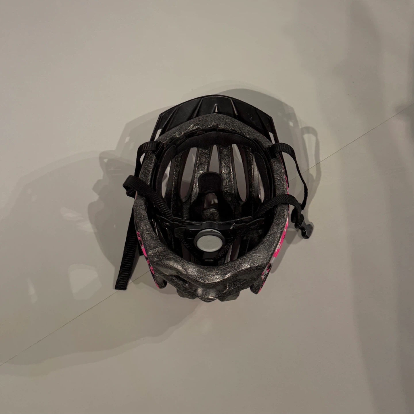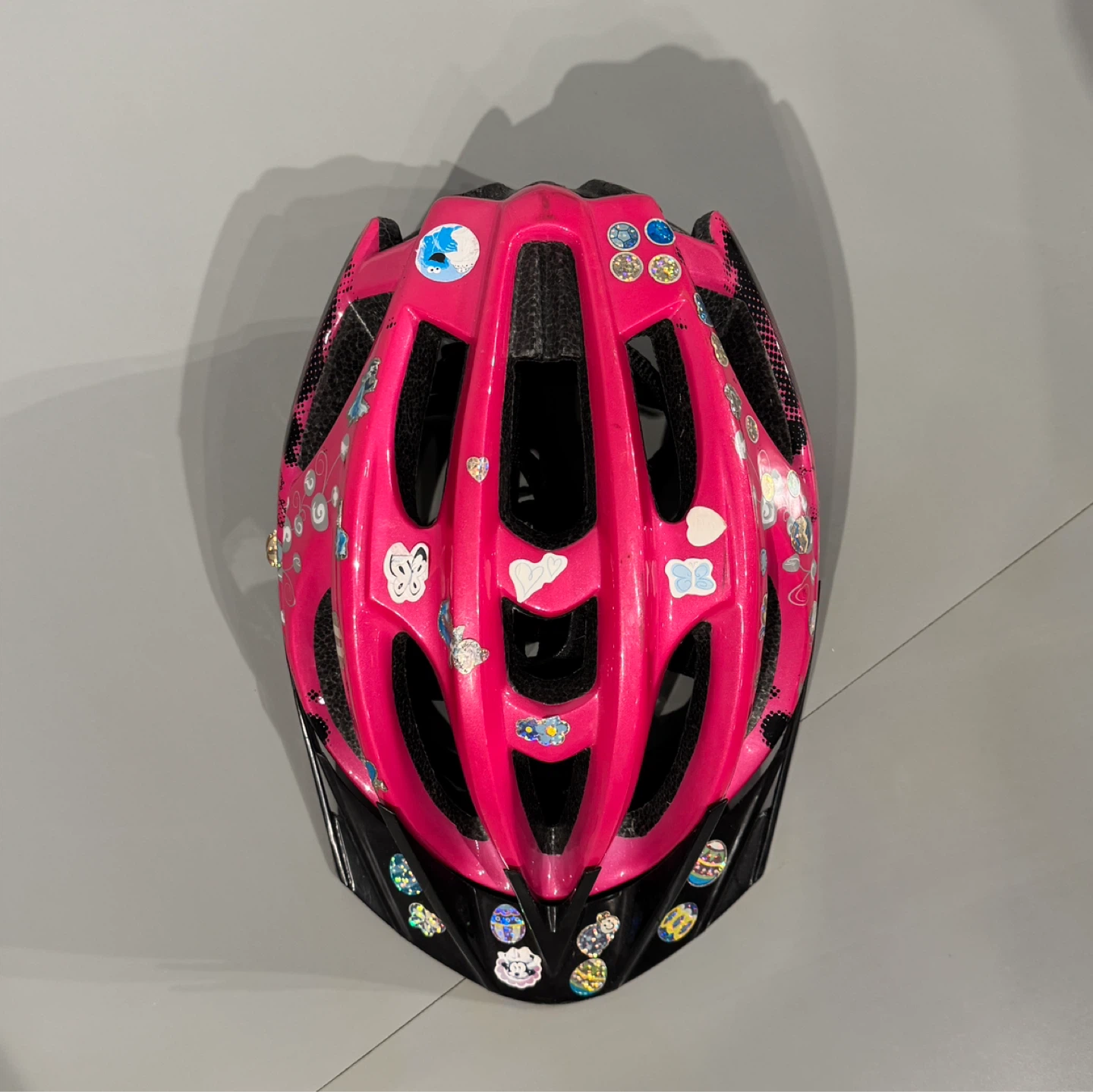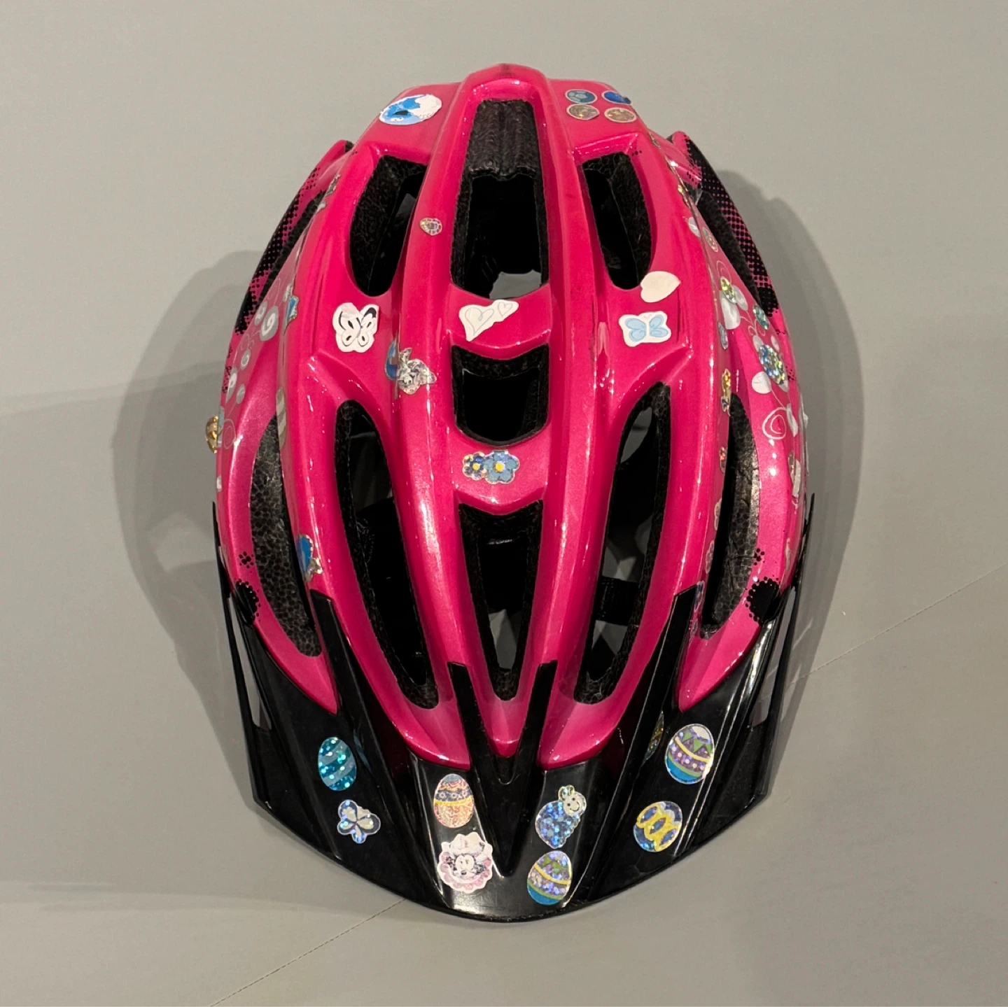 Pink and black lightweight children’s bike helmet in great structural condition. Fits most kids aged 4–8 depending on head size.