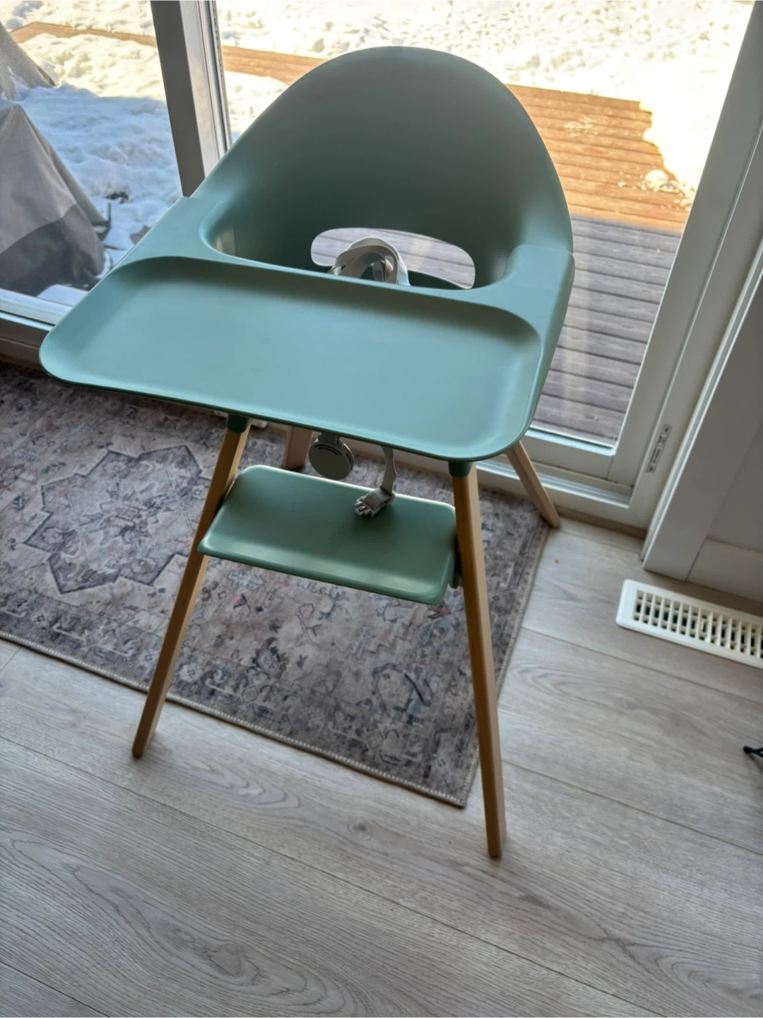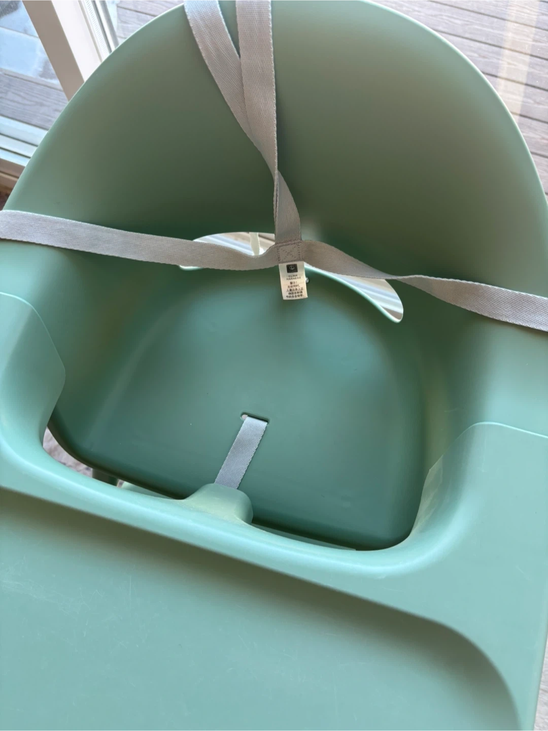 Purchased for $279 from West Coast Kids. Perfect condition except there is a crack at the back bottom (see picture) where you insert and remove the harness strap for washing. We intentionally made it for easier removal. Once baby is ready to sit at the table - remove the tray and slide the chair right up to the table. We used this as a regular chair until our preschooler got too big.