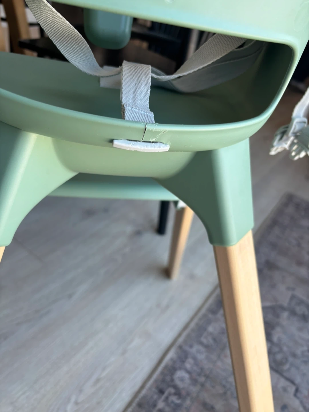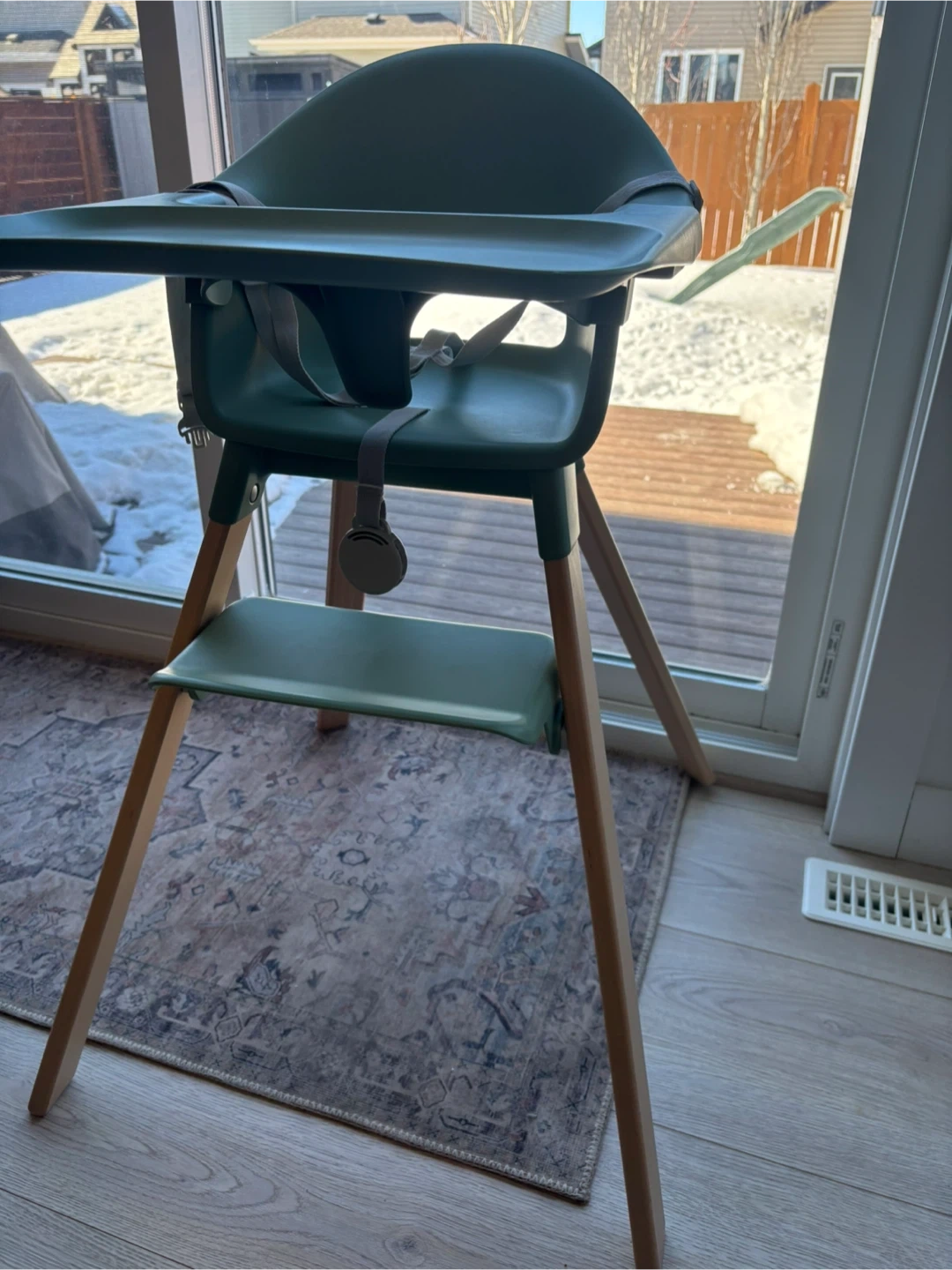 Purchased for $279 from West Coast Kids. Perfect condition except there is a crack at the back bottom (see picture) where you insert and remove the harness strap for washing. We intentionally made it for easier removal. Once baby is ready to sit at the table - remove the tray and slide the chair right up to the table. We used this as a regular chair until our preschooler got too big.
