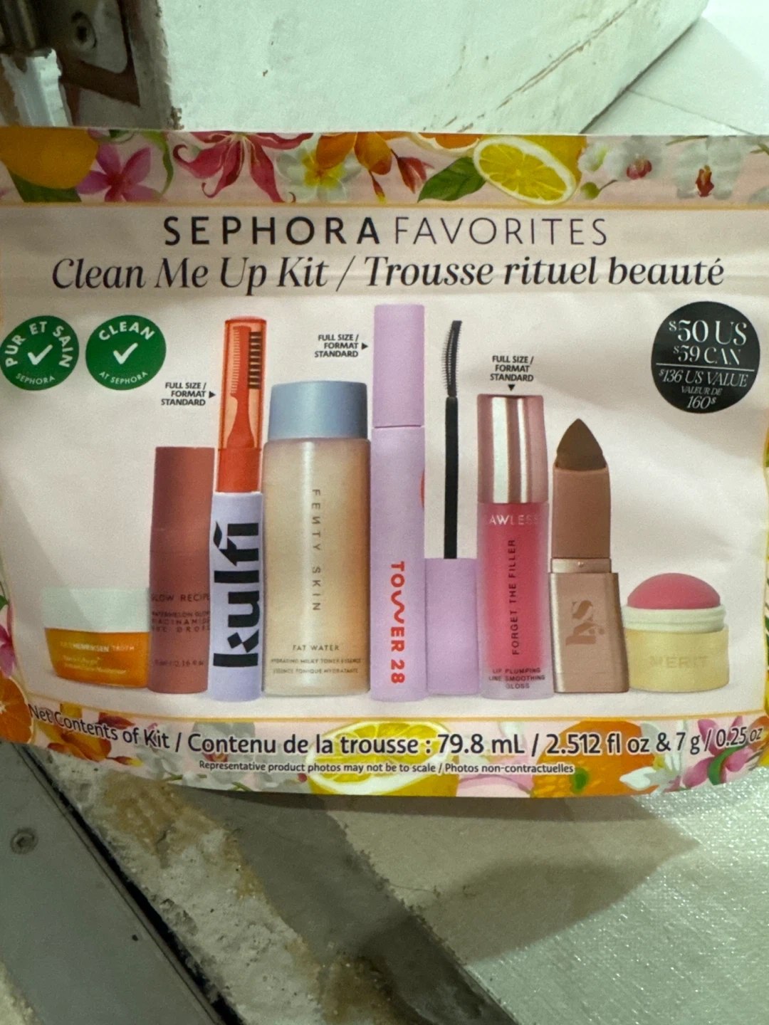 Selling a Sephora Favorites Clean Me Up Kit! This set includes a variety of full-size products from brands like Kulfi, Fenty Skin, Tower 28, and Merit. The kit contains 79.8mL / 2.512 fl oz & 7 g/0.25oz of product. Originally valued at $59 CAD