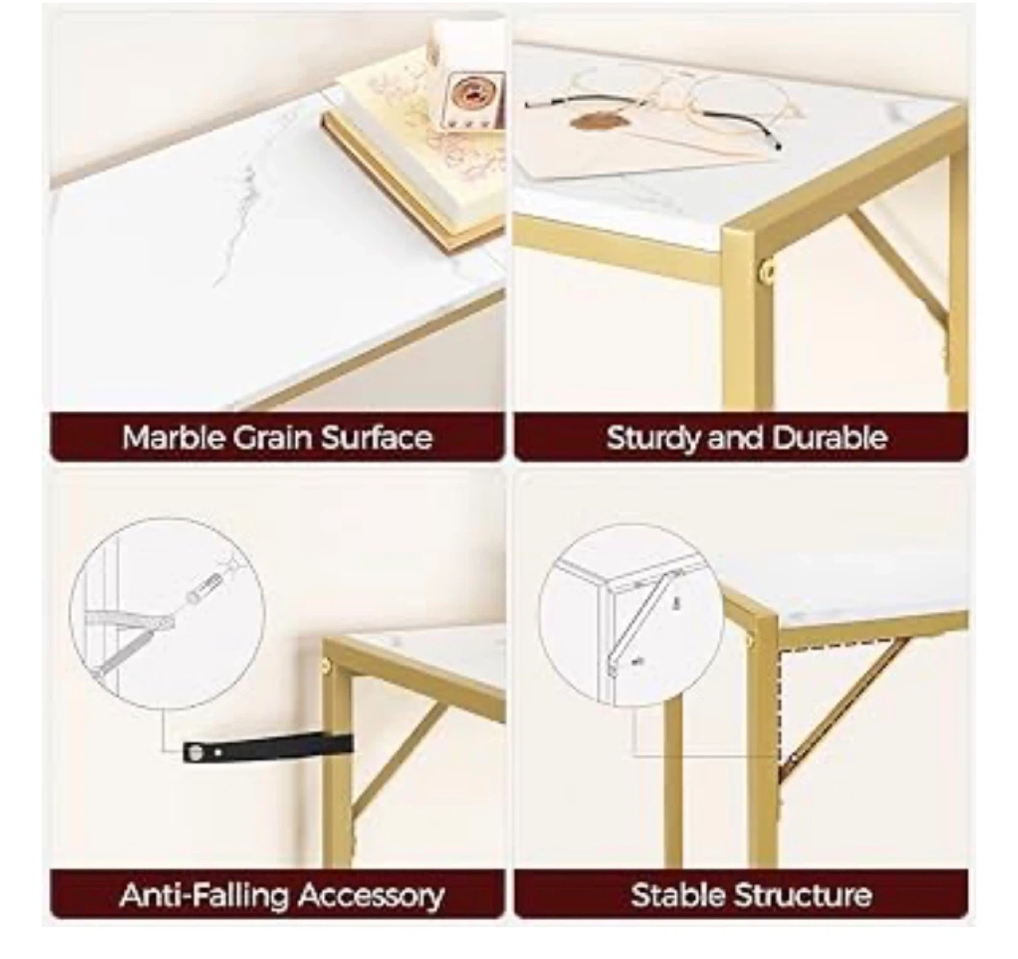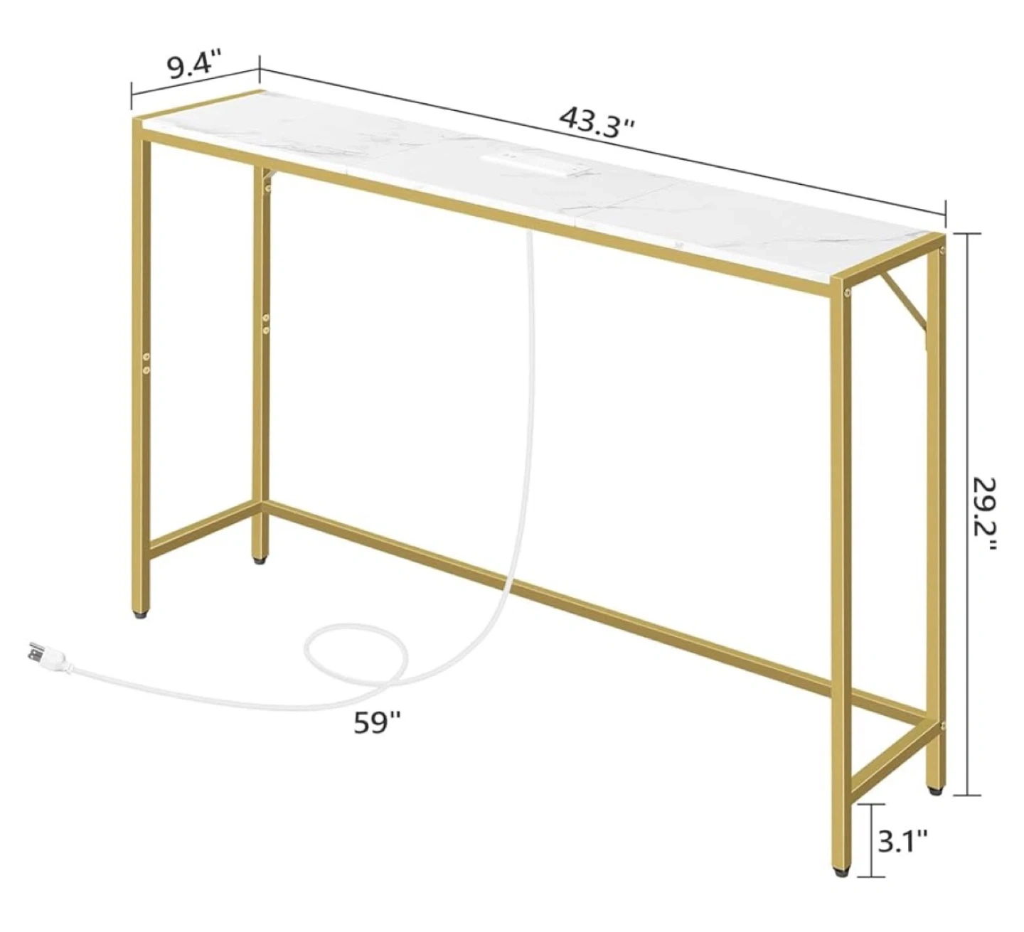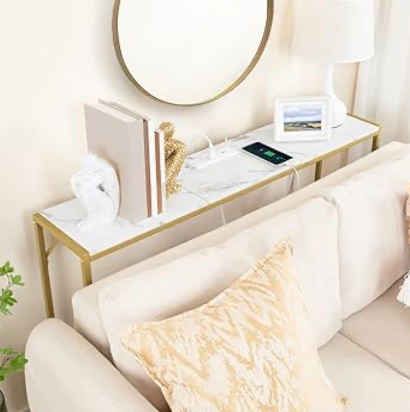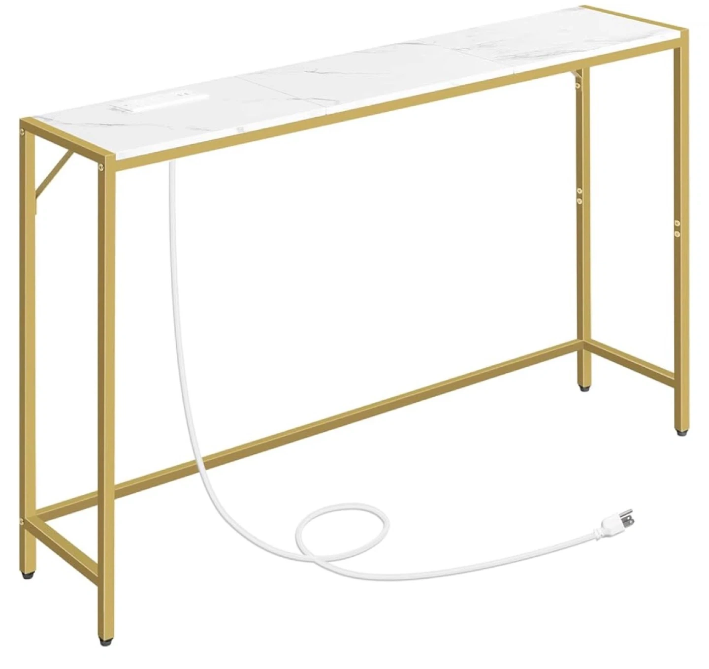 This MAHANCRIS console table features a white marble grain surface and a gold metal frame.