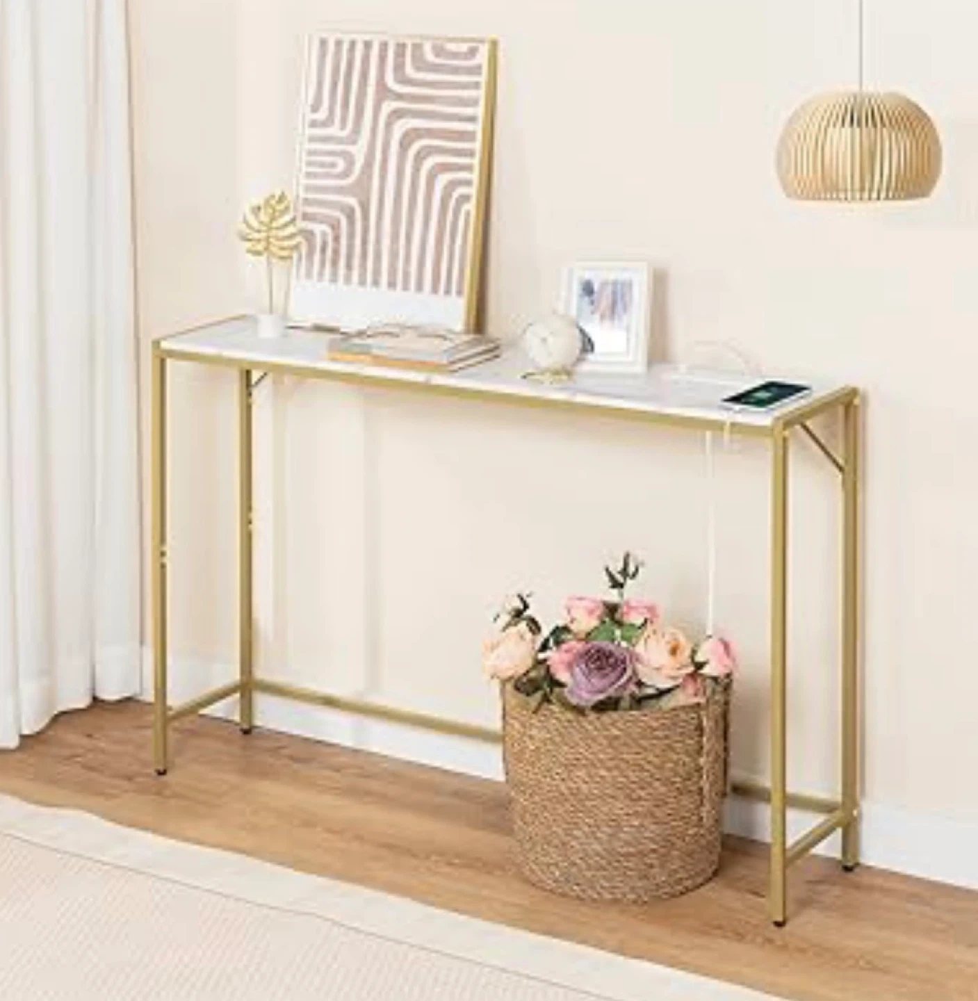 Its slim design is perfect for entryways or behind a sofa.