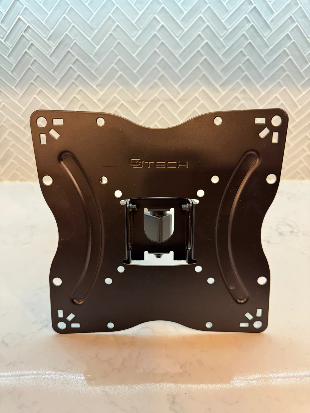 This is a JCTECH TV wall mount bracket. It's made of durable black metal. The mount extends and swivels for easy viewing angles.