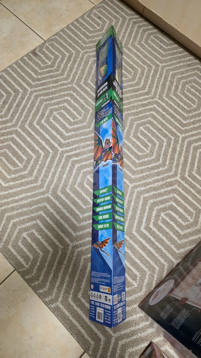 This is a supersized nylon 3-D kite with a 76-inch wingspan. It's made with durable Hitetex fabric and comes with a TriWinder. It's ready to fly!