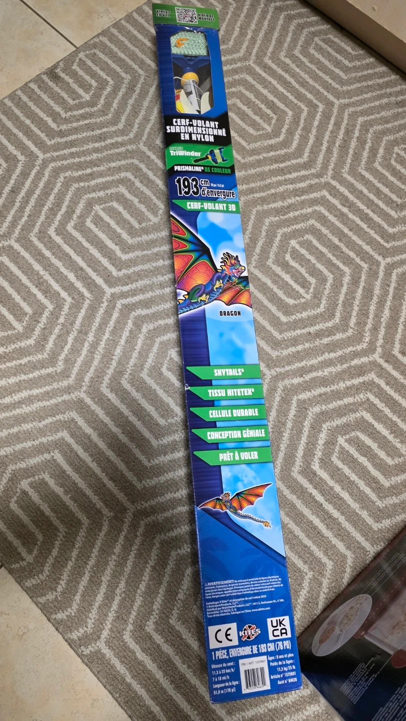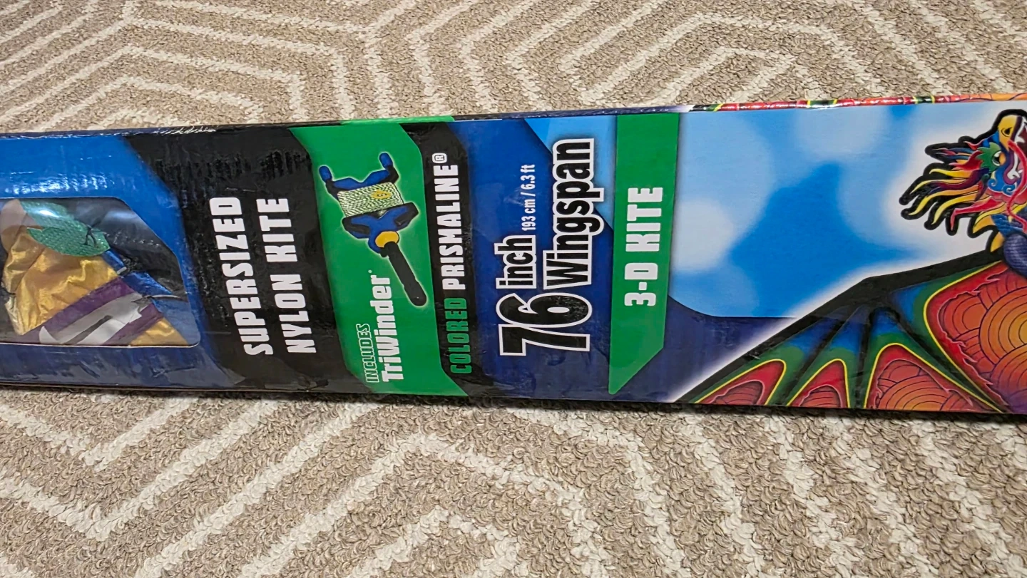 This is a supersized nylon 3-D kite with a 76-inch wingspan. It's made with durable Hitetex fabric and comes with a TriWinder. It's ready to fly!