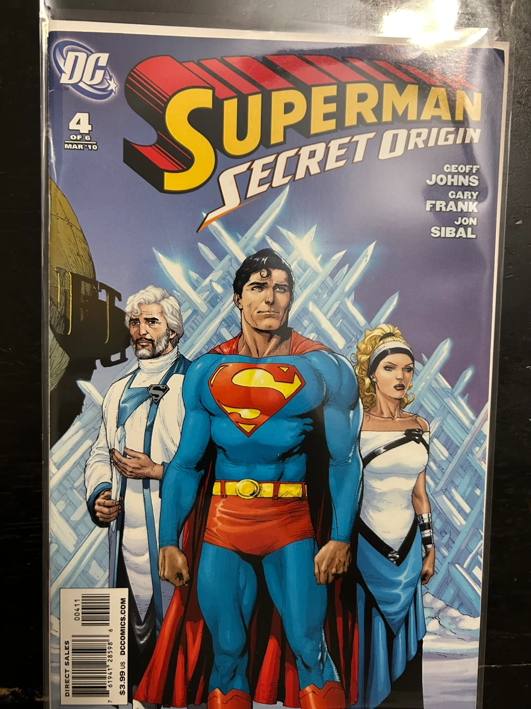 Selling a Superman Secret Origin comic book. This is issue 4 of 6, published in March 2010. The cover price was $3.99. A great addition to any comic collection!