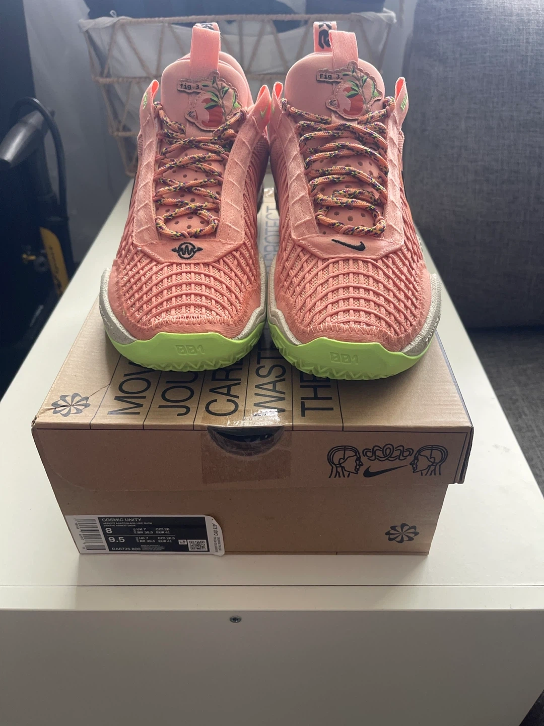 Brand new Nike Cosmic Unity basketball shoes in a salmon pink colour. The shoe is size 8 mens brand new with receipt from sports check