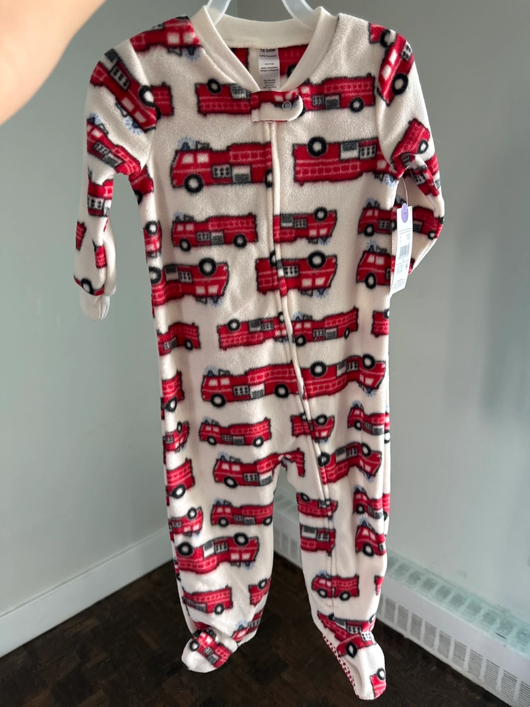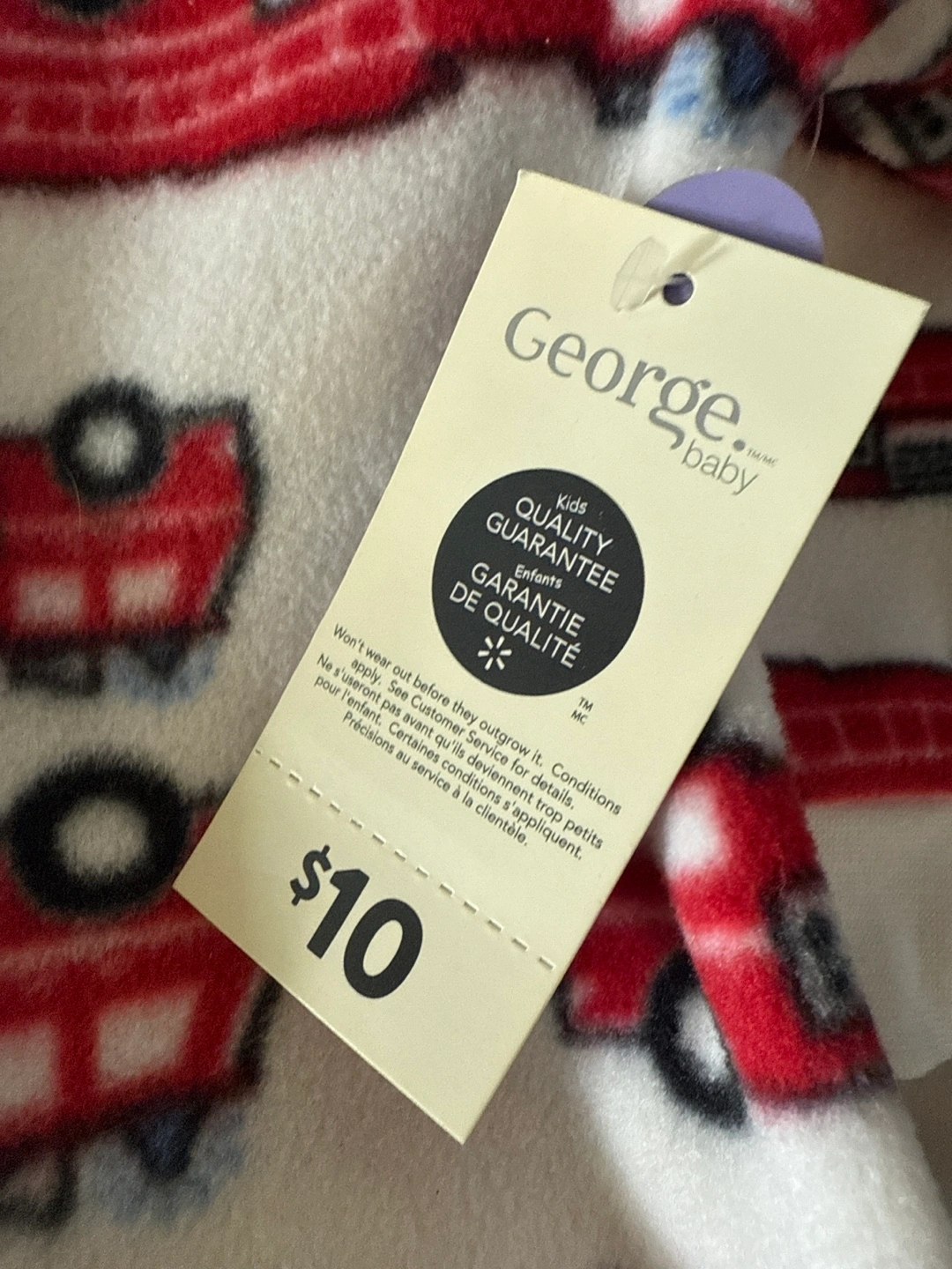 Super cute and cozy George baby pajamas with a fun firetruck print! These are size 18-24 months and are in excellent condition. The original tag is still attached, and they were originally bought for $10. Perfect for keeping your little one warm and comfy!