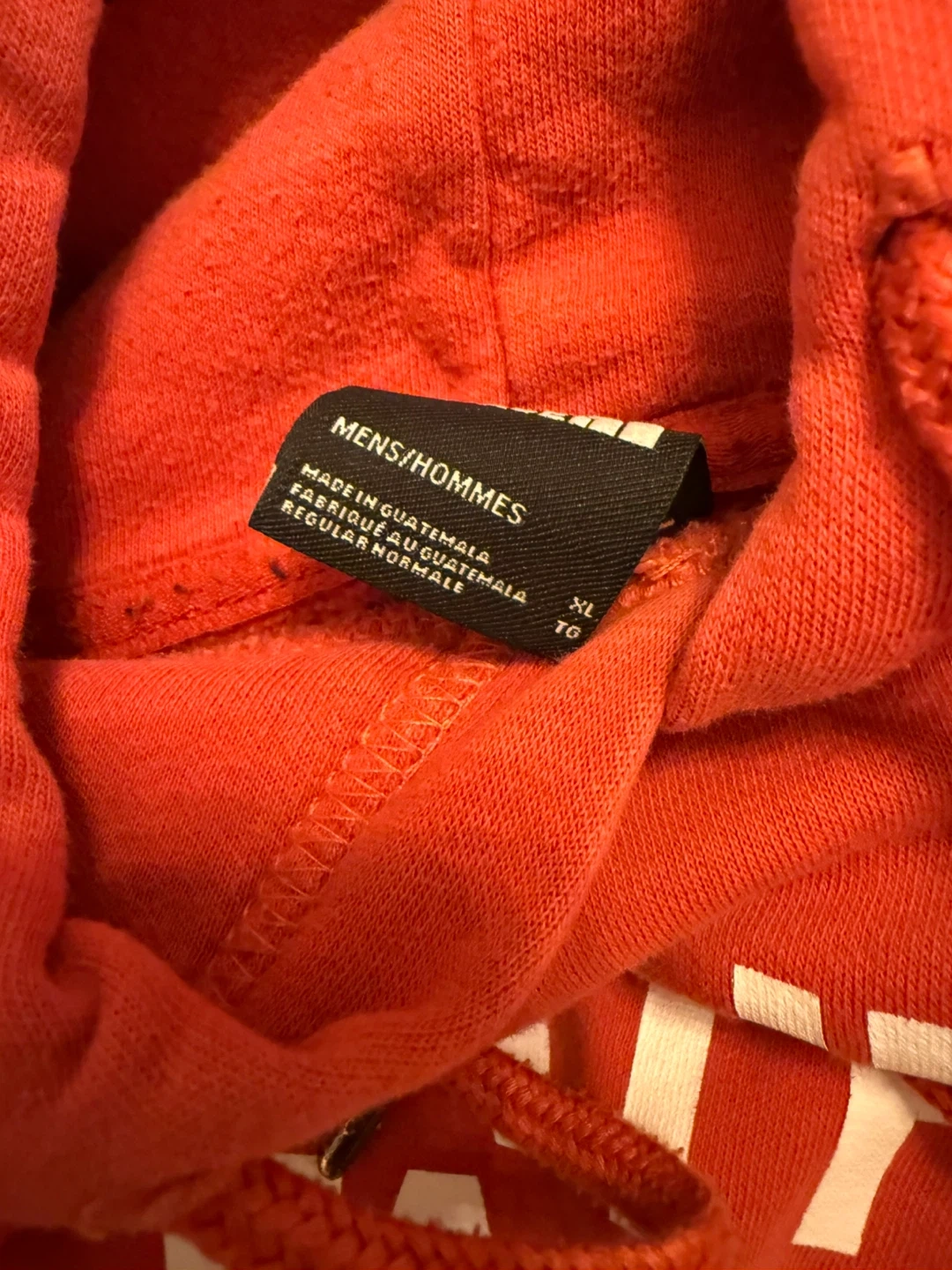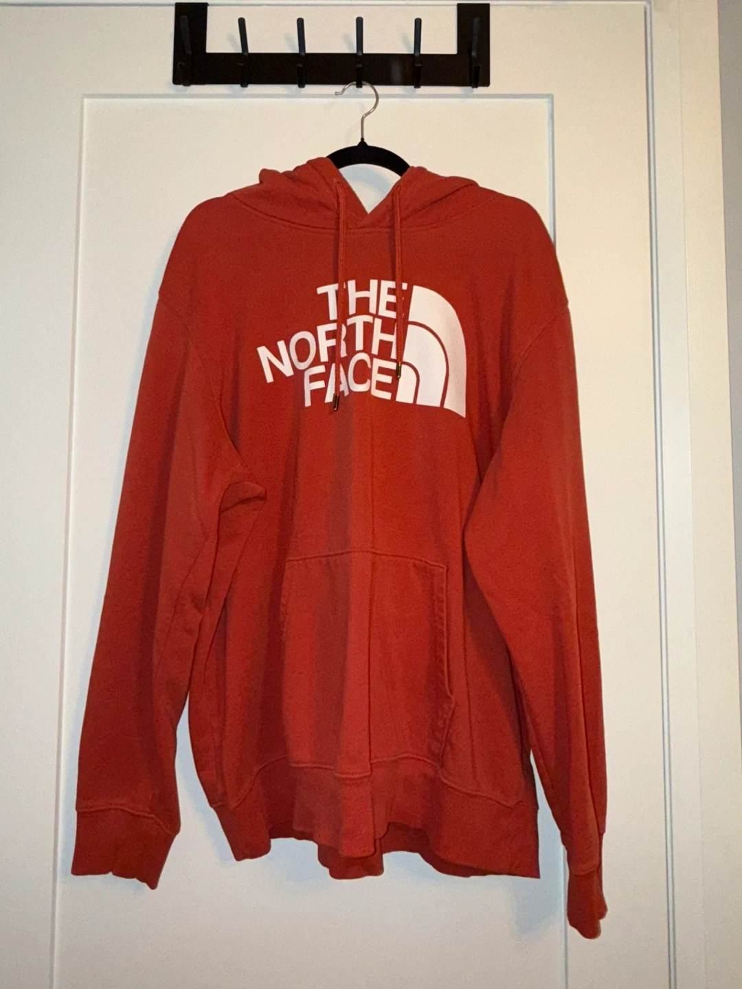 Cozy The North Face hoodie in size XL. It's a nice reddish-orange colour, perfect for staying warm on chilly days!