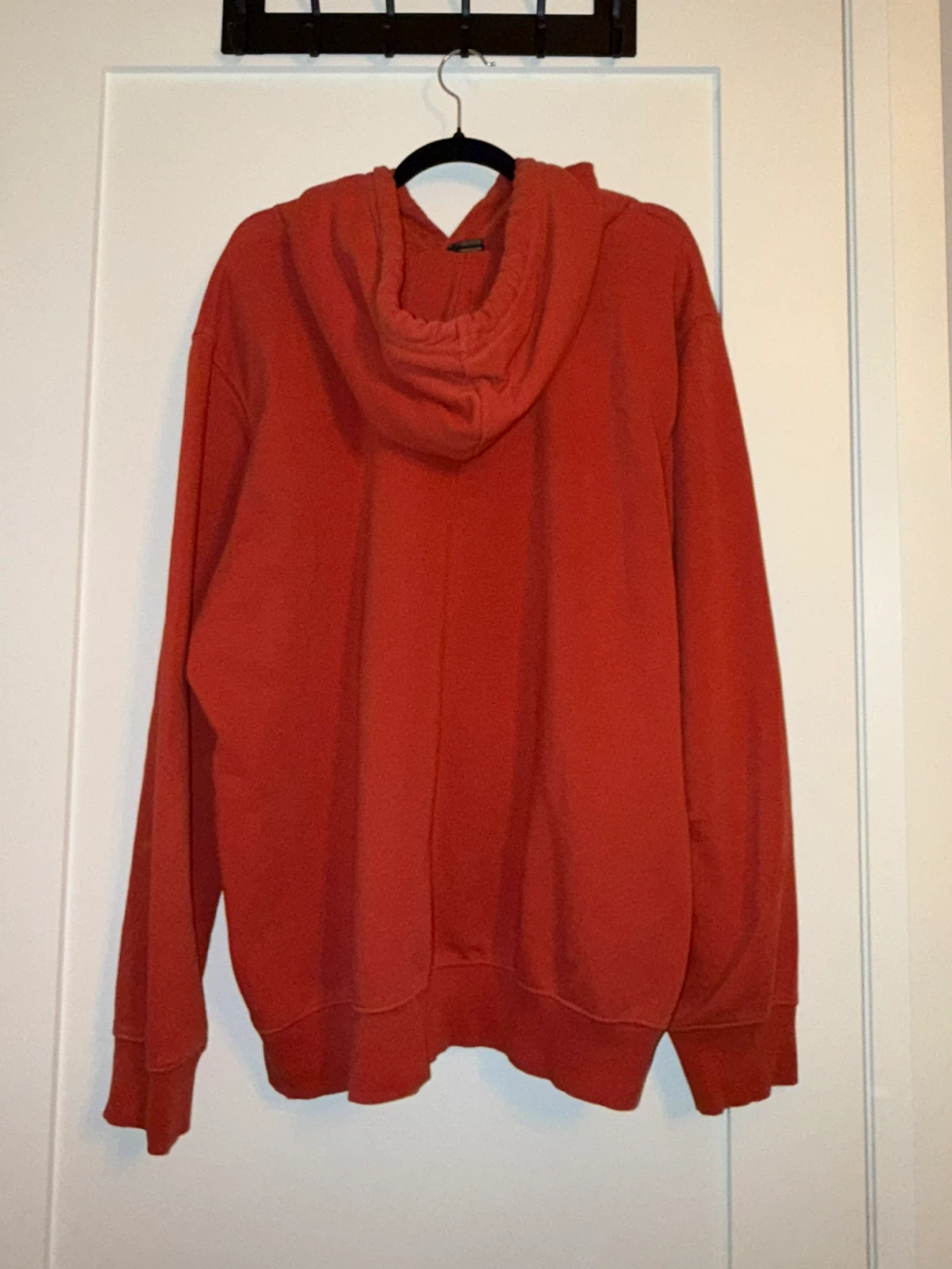 Cozy The North Face hoodie in size XL. It's a nice reddish-orange colour, perfect for staying warm on chilly days!