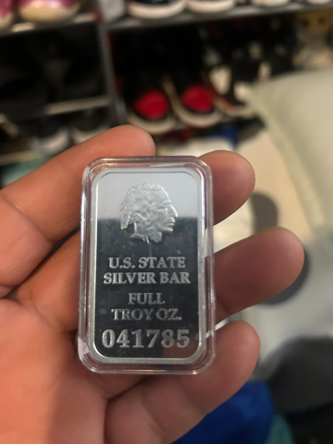 Buy & SellU.S. State Silver BarU.S. State Silver Bar$84U.S. State Silver Bar. Full troy oz. Serial number 041785. Comes in protective casing.ConditionNewWHERE TO MEETAnywhereView MapSELLERJuan CarlosBorough Park272 reviews4 chats·1 favorites·189 viewsSEND CHAT TO SELLERHi Juan Carlos! I’m interested in your listing.Hi Juan Carlos! I’m interested in your listing.Get the Karrot app to chatSign In to chat