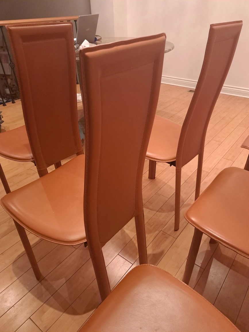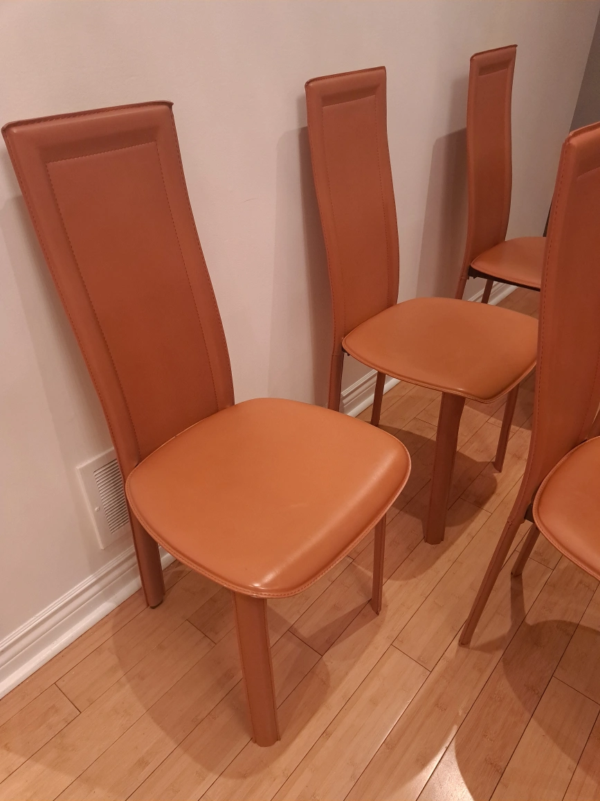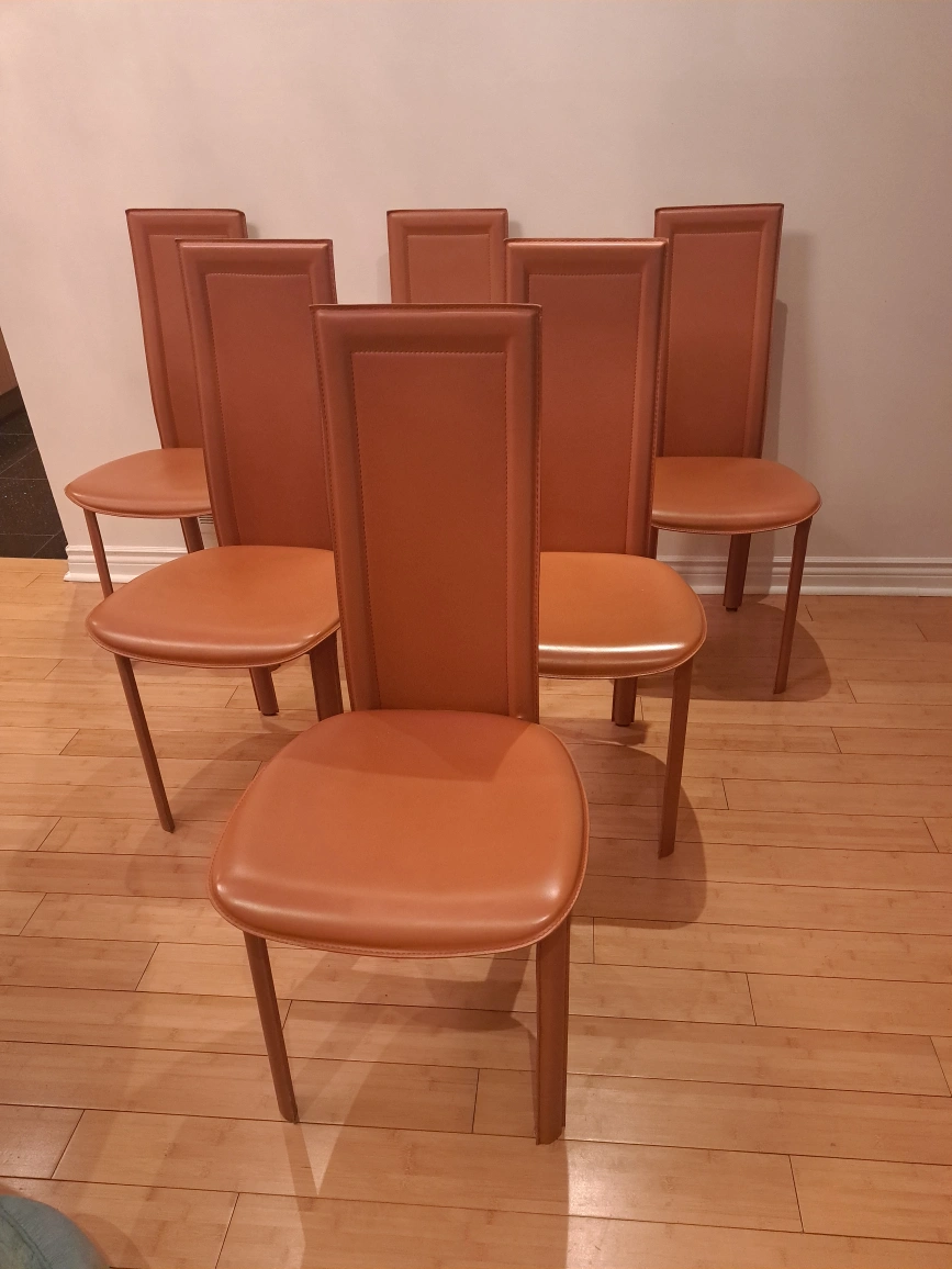 Set of 6 Beautiful Vintage Italian Leather Dining chairs, 1980s
