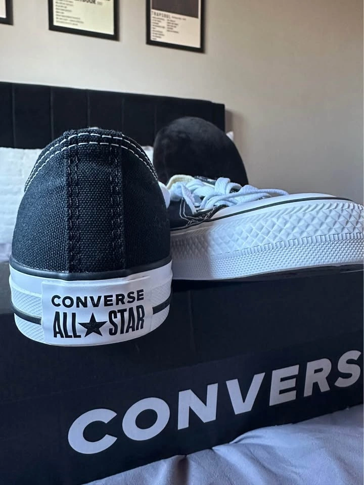 Selling a pair of brand new Converse All Star low-top sneakers in black, never worn. The size was too small, so we’re letting them go. Size: Women’s 8.5 / Men’s 6.5. Color: Black with white sole. Comes with original box. Clean, classic style and perfect for everyday wear.