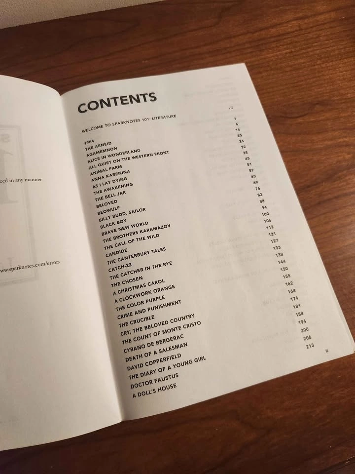 Original Sparknotes 101 Literature Review Study Book