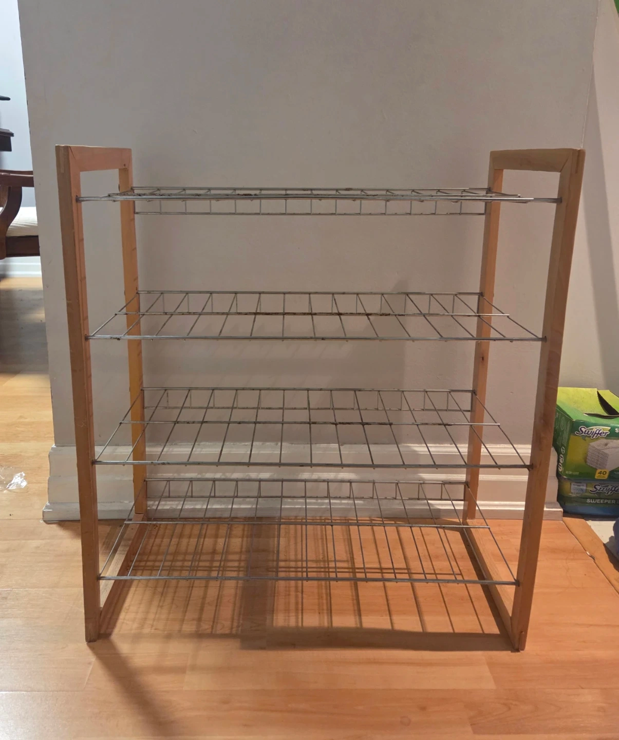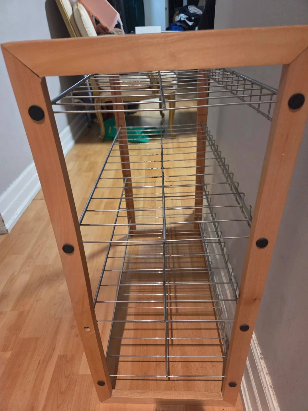 Buy & SellWooden Shoe Rack with 4 TiersWooden Shoe Rack with 4 Tiers$10A simple wooden shoe rack with four wire shelves. It's perfect for organizing footwear by the entrance .very good condition. ConditionLike newWHERE TO MEETCheck LocationView MapSELLERverifiedBethBay Street Corridor1000+174 reviews5 chats·5 favorites·39 viewsSEND CHAT TO SELLERHi Beth! I’m interested in your listing.Hi Beth! I’m interested in your listing.Get the Karrot app to chatSign In to chat