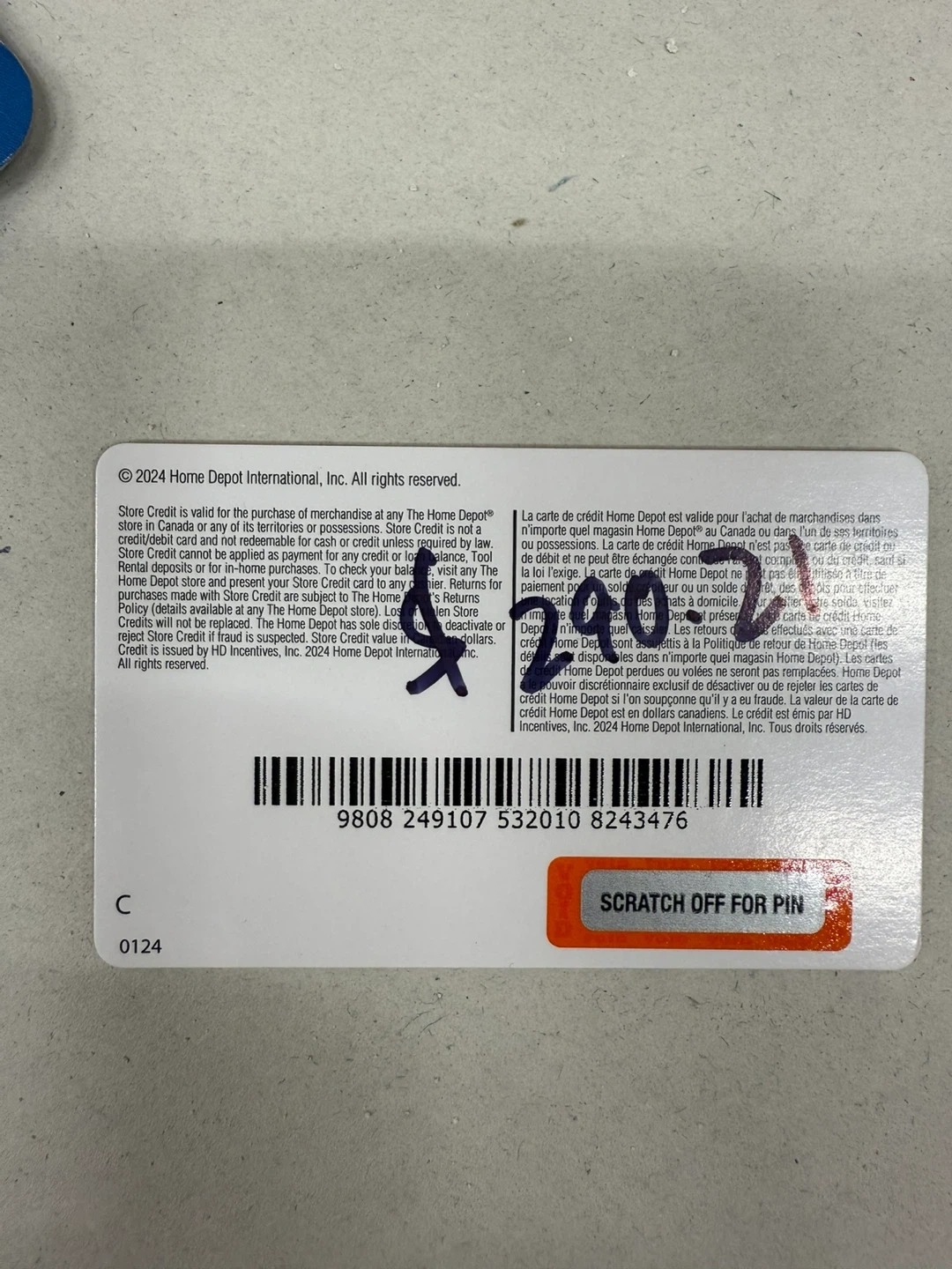 Selling a Home Depot giftcard with a balance of $290. It's perfect for any home improvement projects you might have. The balance on card does not expire and can be used both in store and for online purchases. Can meet at Homedepot to verify card balance