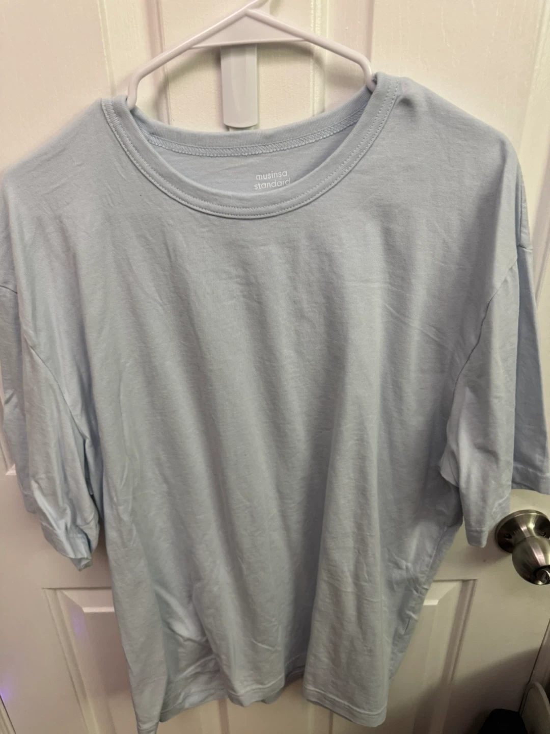 Selling a set of Musinsa Standard T-shirts in light blue, pink, and cream! They're in great condition and ready for a new home