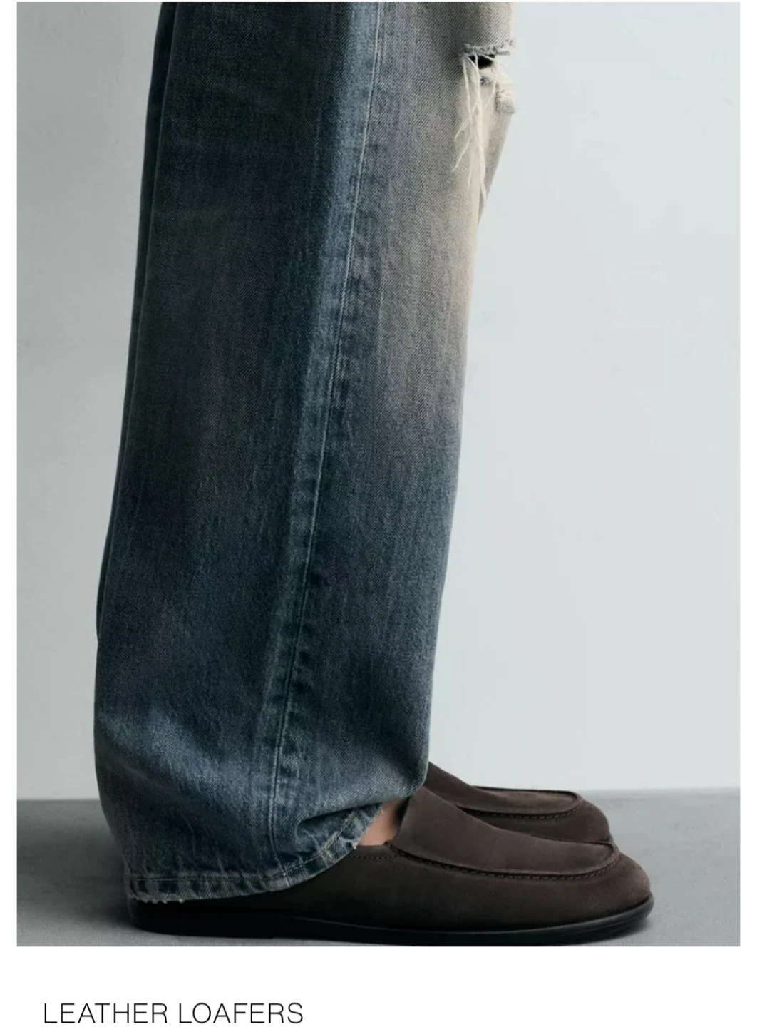 Zara Man Taupe Grey Suede Leather Loafers