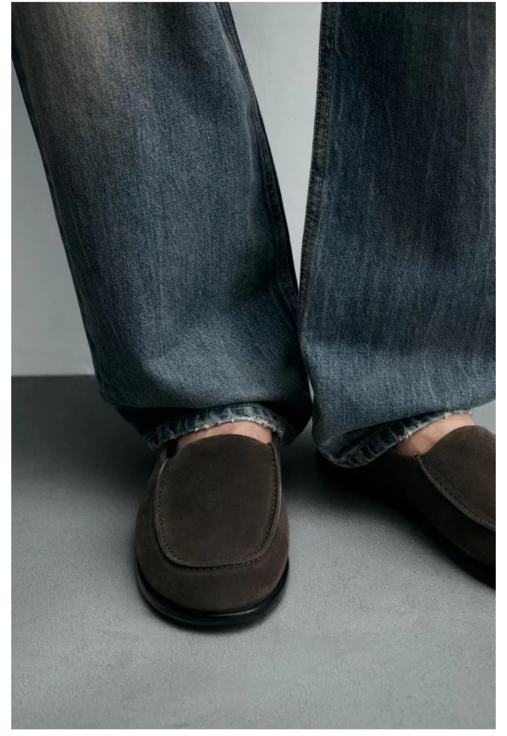 Zara Man Taupe Grey Suede Leather Loafers