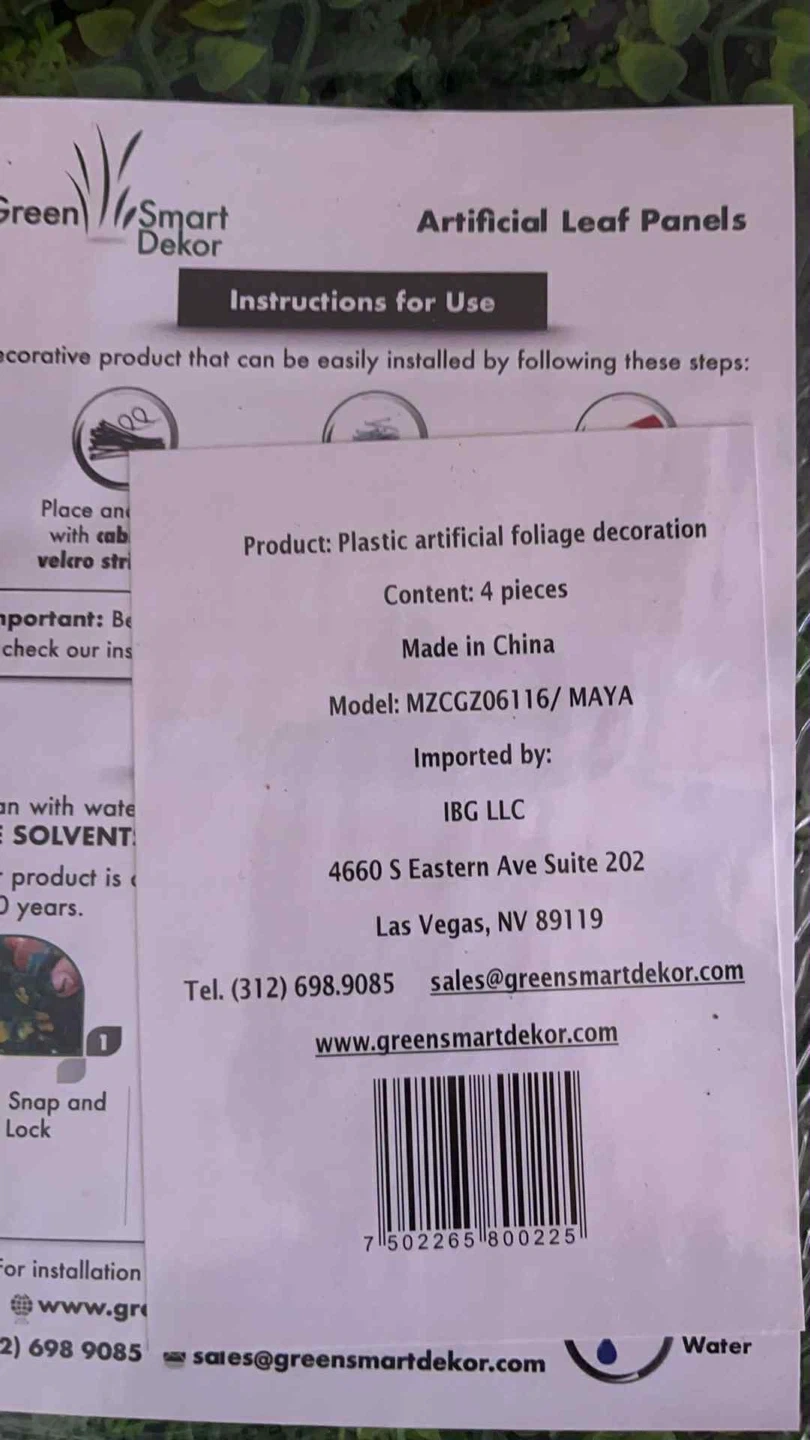 15Greensmart Dekor Artificial Decorative Maya Leaves Wall Panels ,Set of 4 🌸 brand new in box Can open for you to check price firm…4 for $45 Get a realistic look and feel with Greensmart Dekor. Detailed with life like leaves that create a natural and calming environment. Perfect for building a green wall, hedge, privacy fence, disguising unsightly areas. Panels can be used indoors or outdoors. Each pack contains set of 4 panels (19.68 in x 19.68 in) which cover 10.76 sqft Made of PE that is UV proteted Weather Resistant Maintenance free Quick and easy to install Eco friendly-no water needed